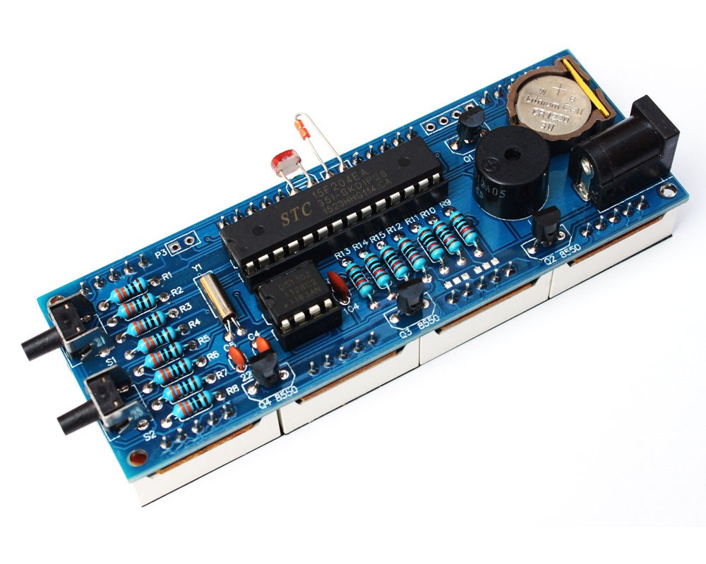 Набір для самостійного складання електронного годинника c термометром і регулюванням яскравості світіння дисплея, колір світіння зелений. Розміри плати: 100х35 мм.