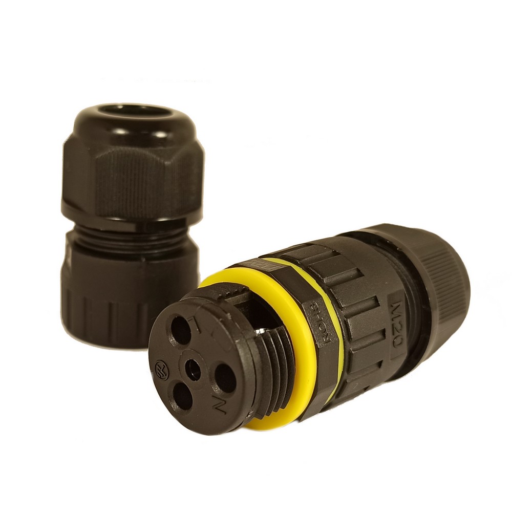 Герметичний кабельний з'єднувач. Різьба М20. Кількість контактів: 4 Діаметр кабелю: 5-9 мм. IP68