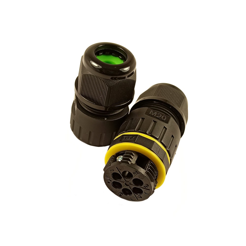 Герметичний кабельний з'єднувач. Різьба М20. Кількість контактів: 5 Діаметр кабелю: 5-9 мм. IP68