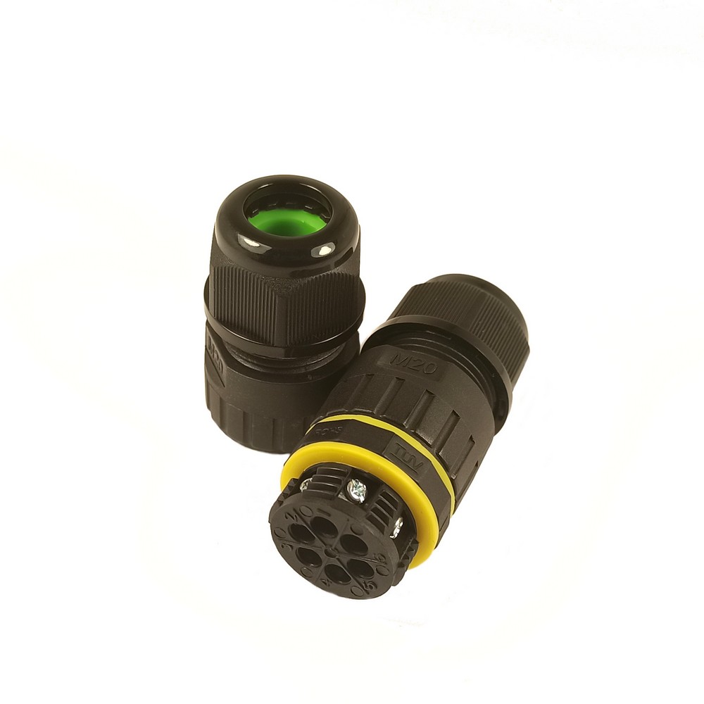 Герметичний кабельний з'єднувач. Різьба М20. Кількість контактів: 6 Діаметр кабелю: 9-12 мм. IP68