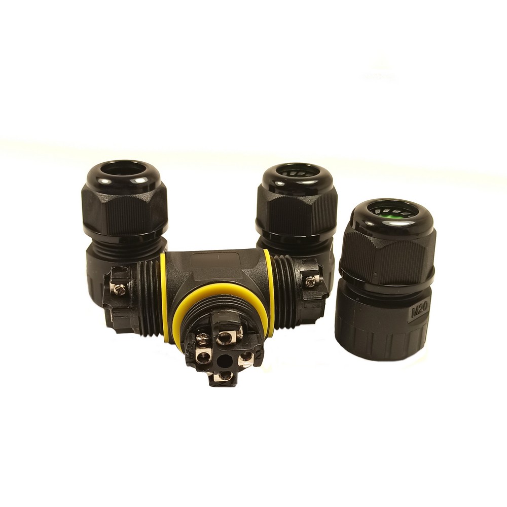 Герметичний кабельний з'єднувач (розгалужувач). Різьба М20. Кількість контактів: 4 Діаметр кабелю: 9-12 мм. IP68