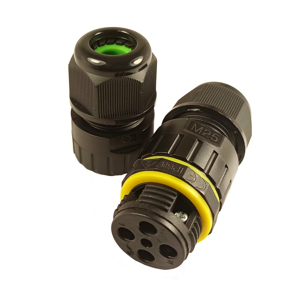 Герметичний кабельний з'єднувач. Різьба М25. Кількість контактів: 2 Діаметр кабелю: 10-14 мм. IP68