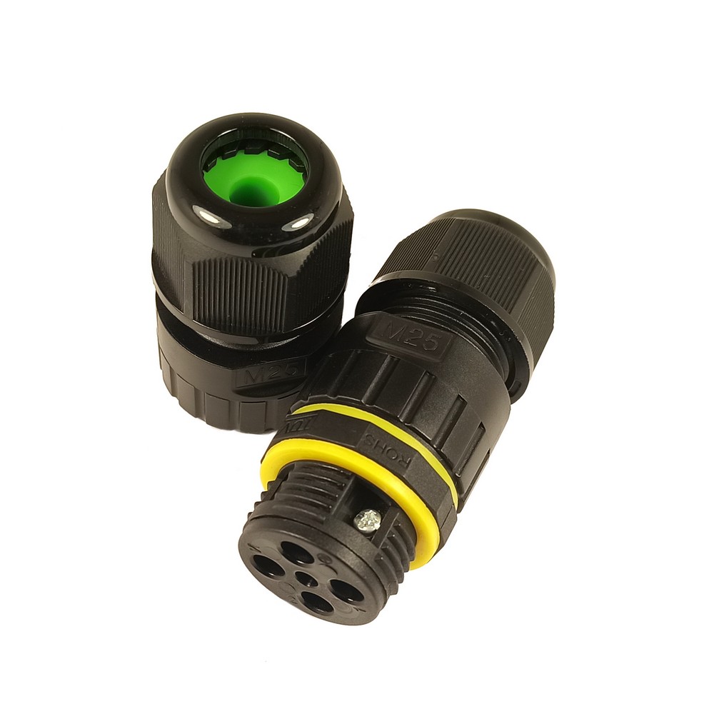 Герметичний кабельний з'єднувач. Різьба М25. Кількість контактів: 2 Діаметр кабелю: 5-9 мм. IP68