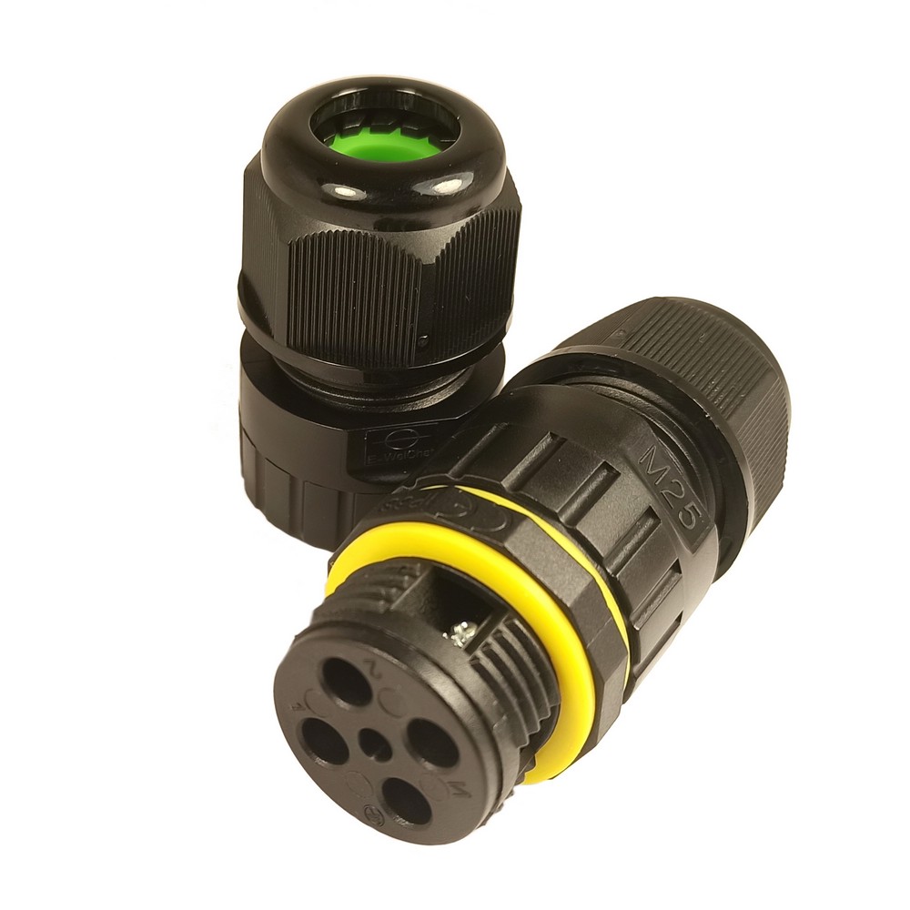 Герметичний кабельний з'єднувач. Різьба М25. Кількість контактів: 3 Діаметр кабелю: 10-14 мм. IP68