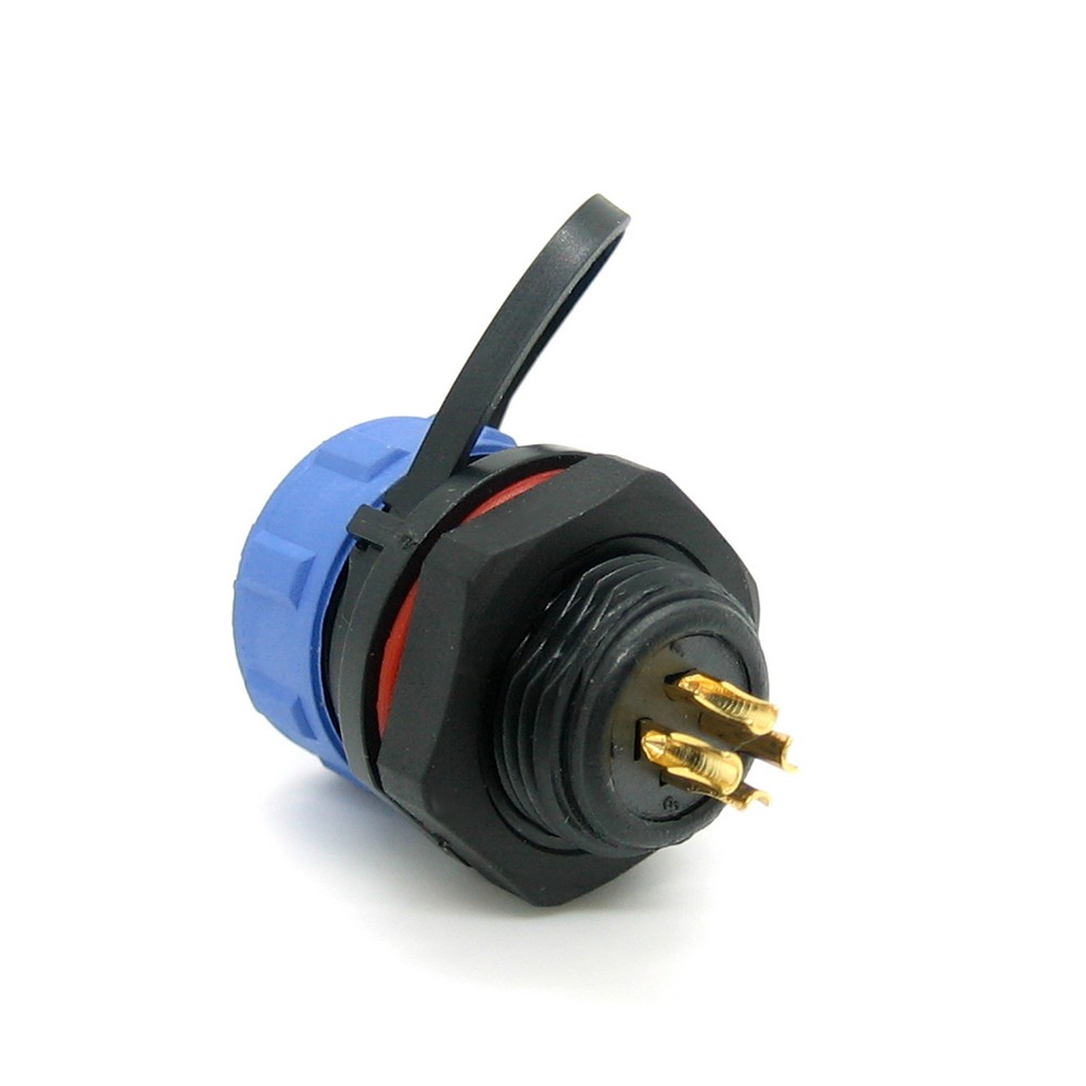 SP13, гніздо, PIN:4, IP68, 250В, 13A, паяння на панель, із захисною кришкою