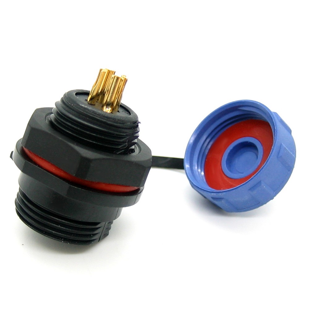 SP13, вилка, PIN:4, IP68, 250В, 13A, паяння на панель, із захисною кришкою