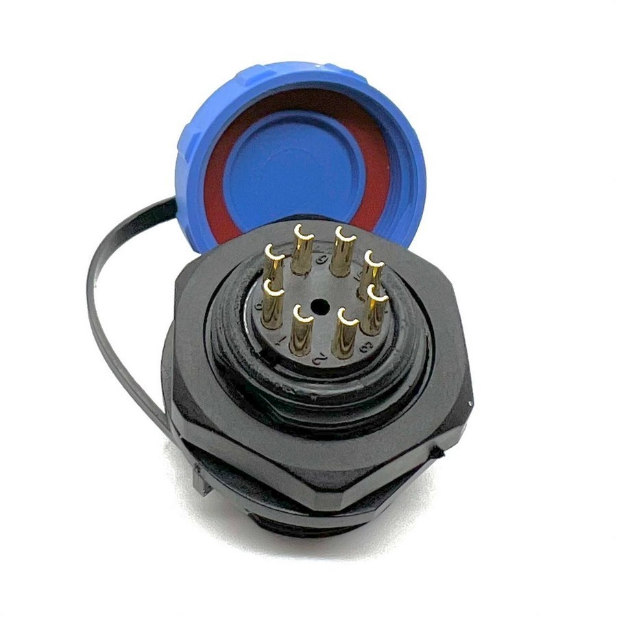 SP17, гніздо, PIN:8, IP68, 500В, 10A, паяння на панель, із захисною кришкою