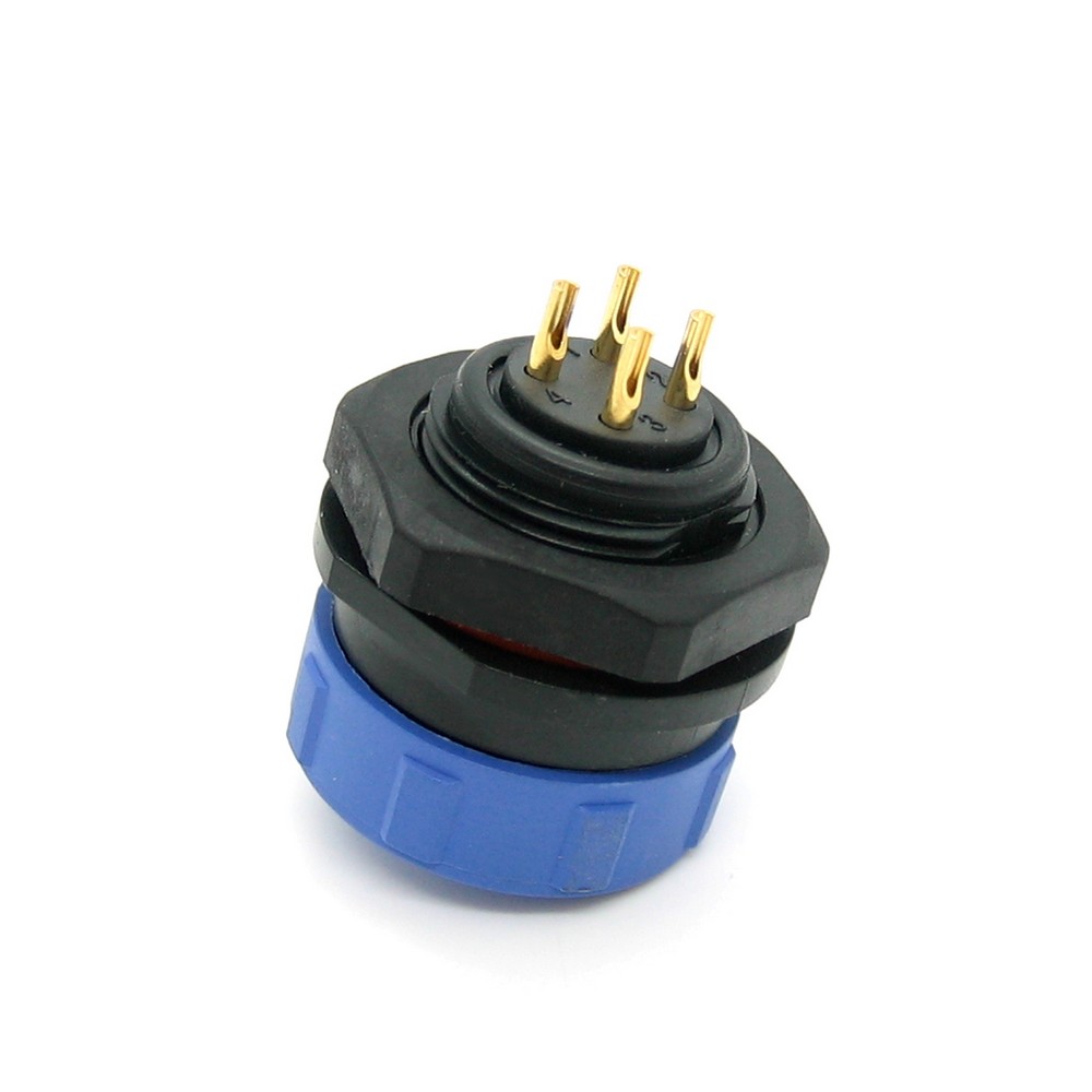 SP17, вилка, PIN:4, IP68, 500В, 10A, паяння на панель, із захисною кришкою