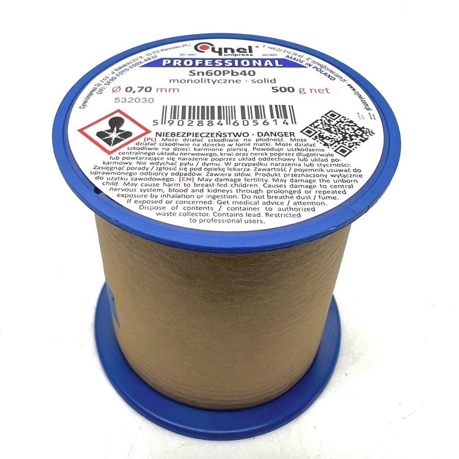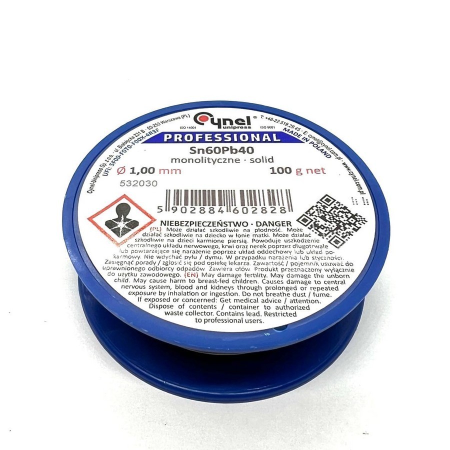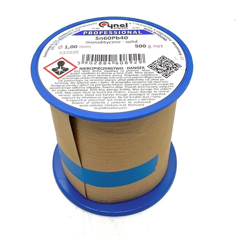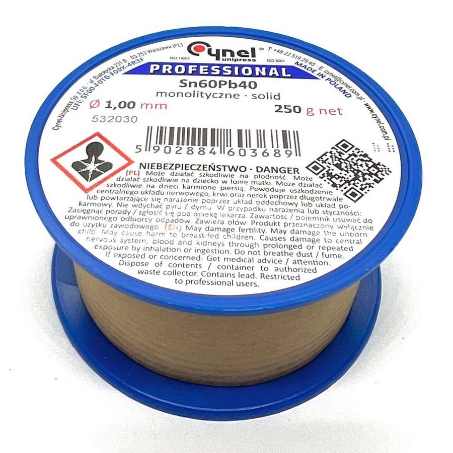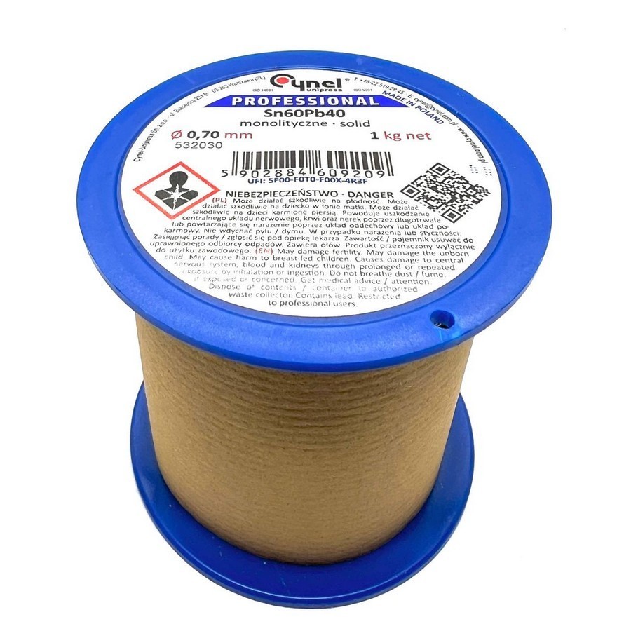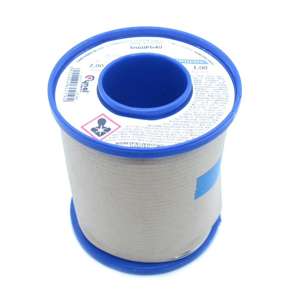 Припій Sn-60% Pb-40% - Діаметр дроту 2 мм, довжина 1 метр, вага близько 26 г, без флюсу, виробництва CYNEL