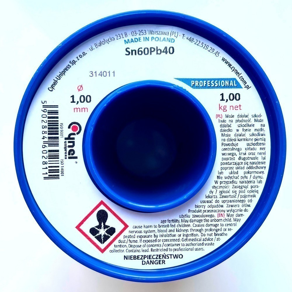 Припій трубчастий Sn-60% Pb-40% Cynel Без флюсу