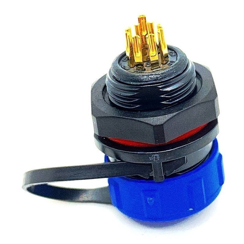 SP13, гнездо, PIN:9, IP68, 250В, 13A, пайка на панель,с защитной крышкой