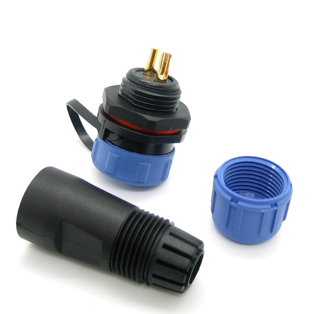 SP13, гнездо, PIN:2, IP68, диаметр кабеля: 4~6.5мм, 250В, 13A, пайка, на провод,с защитной крышкой