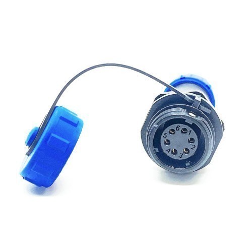 SP13, гнездо, PIN:6, IP68, диаметр кабеля: 4~6.5мм, 250В, 13A, пайка, на провод,с защитной крышкой