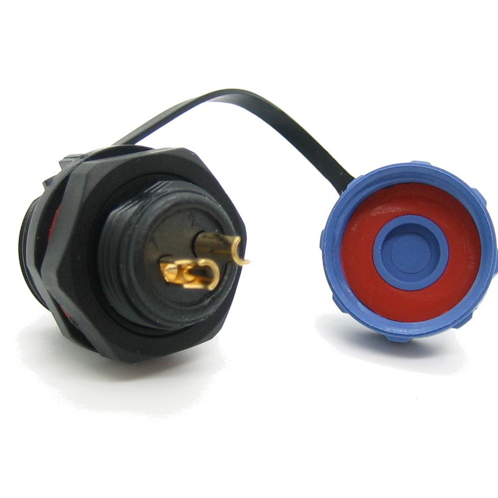 SP13, вилка, PIN:2, IP68, 250В, 13A, пайка на панель,с защитной крышкой