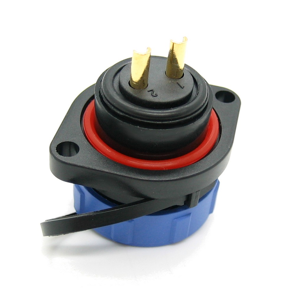 SP17, гнездо, PIN:2, IP68, 500В, 10A, soldering,for Flange,с защитной крышкой, с фланцами