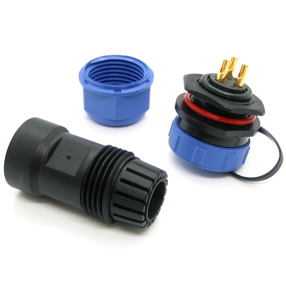 SP17, гнездо, PIN:3, IP68, диаметр кабеля: 6~10мм, 500В, 10A, пайка, на провод,с защитной крышкой