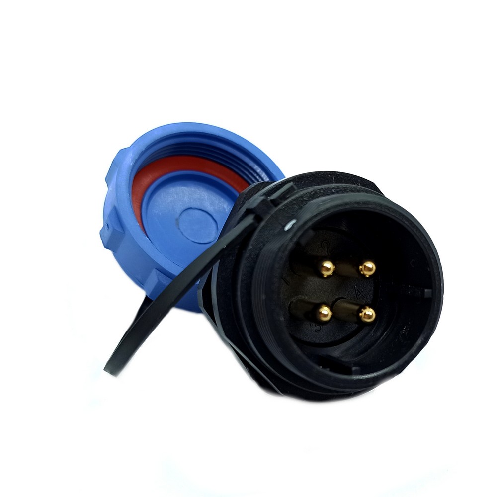 SP21, вилка, PIN: 4, IP68, пайка на панель, 500В, с защитной крышкой