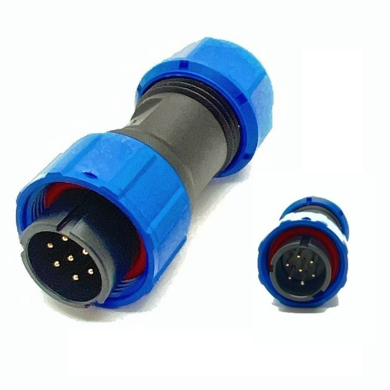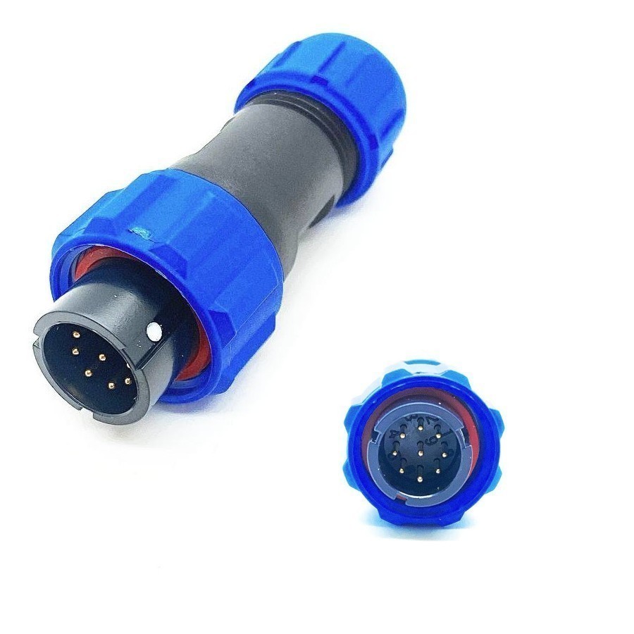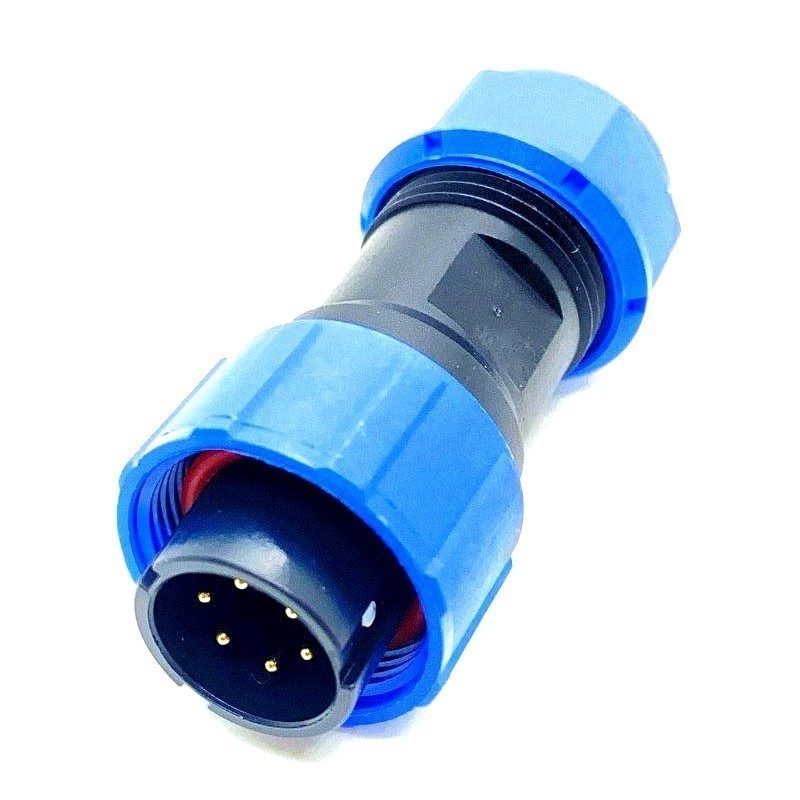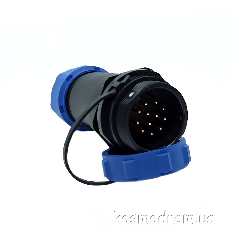 SP13, вилка, PIN:7, IP68, 250В, 13A, пайка на панель,с защитной крышкой