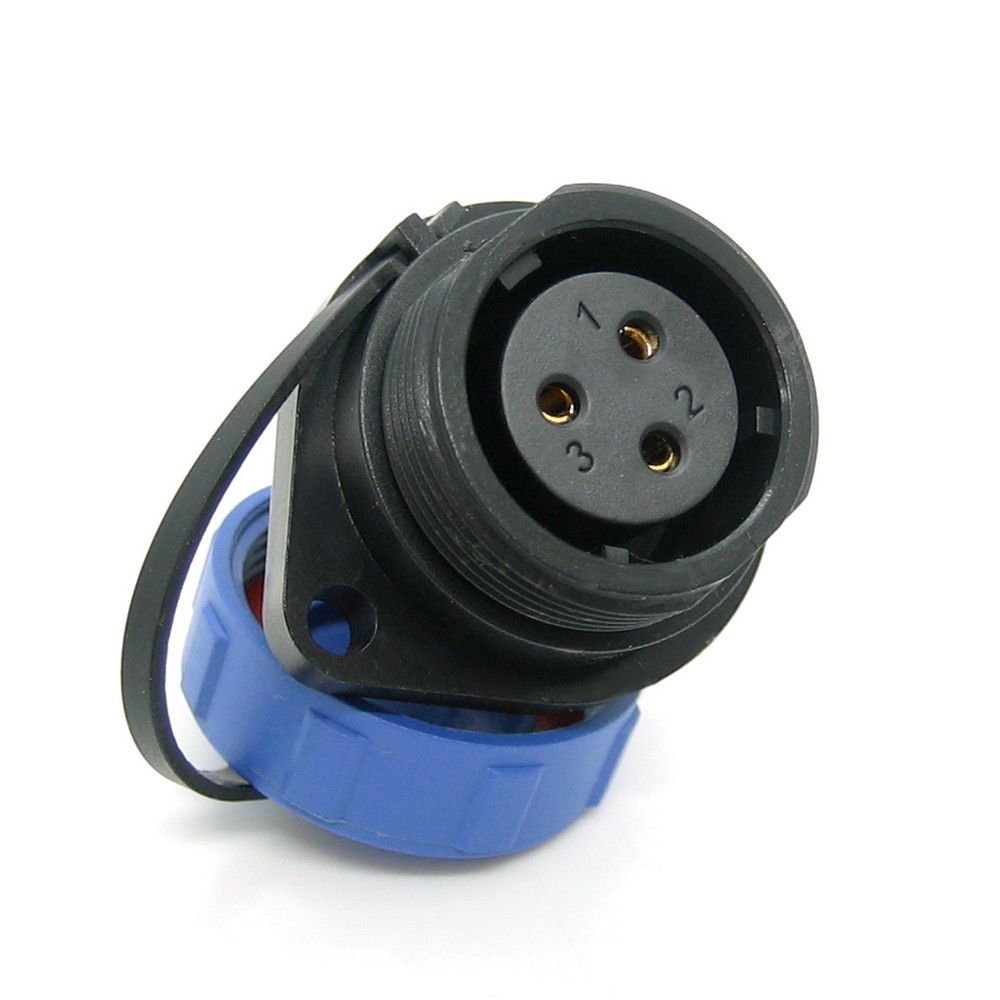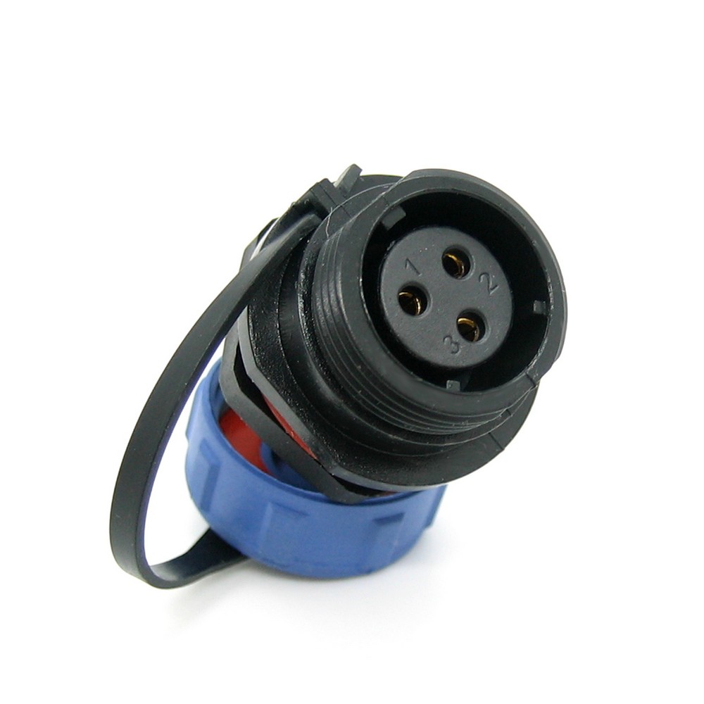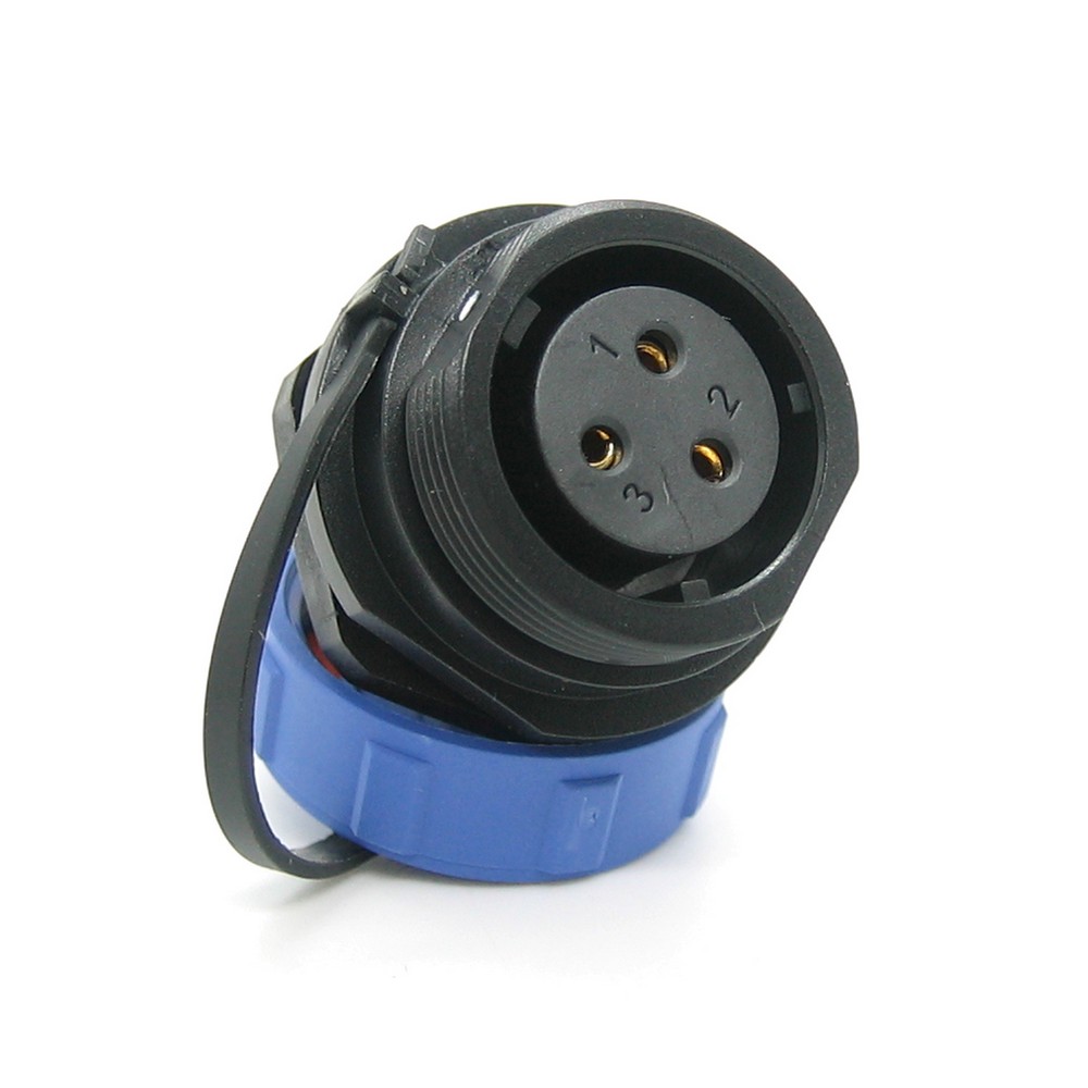 SP13, гнездо, PIN:3, IP68, 250В, 13A, пайка на панель,с защитной крышкой
