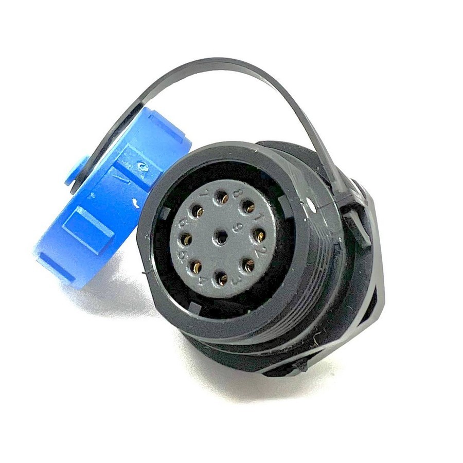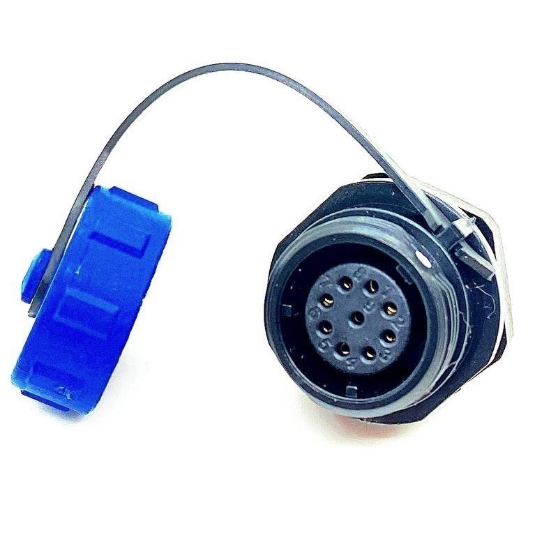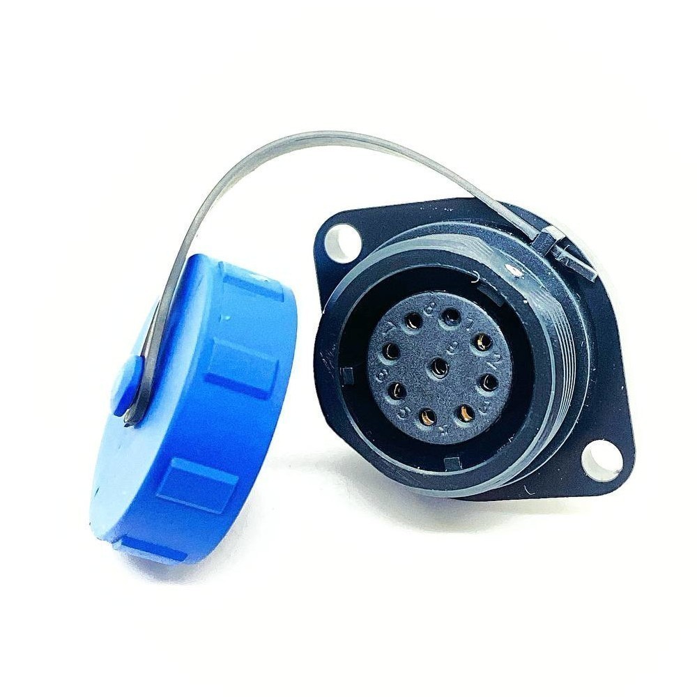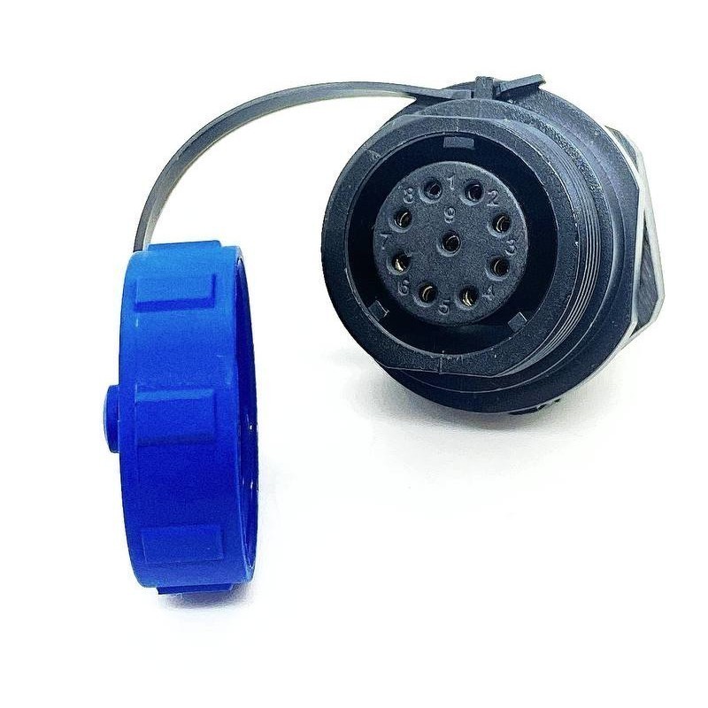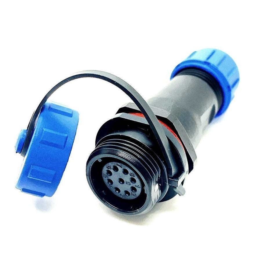 SP13, гнездо, PIN:9, IP68, 250В, 13A, пайка на панель,с защитной крышкой