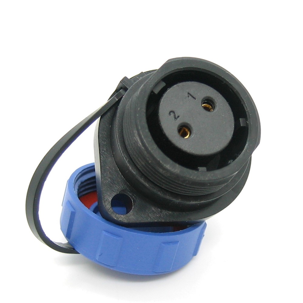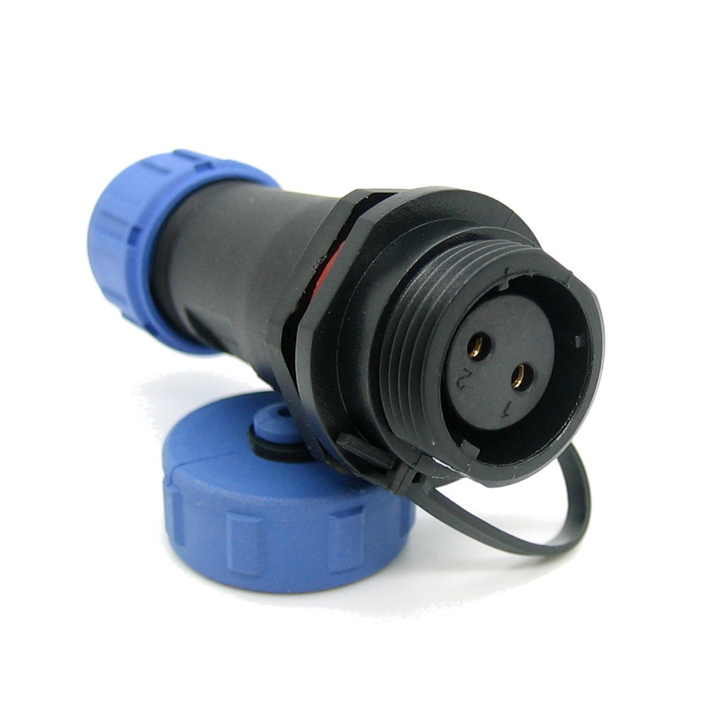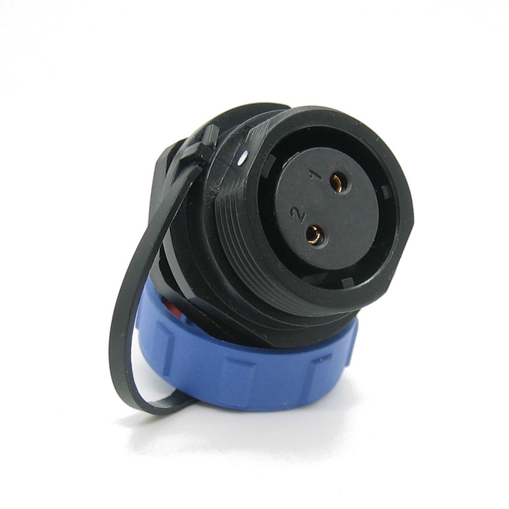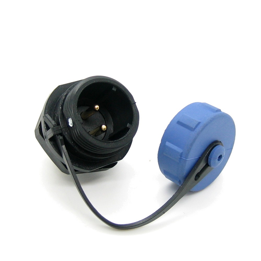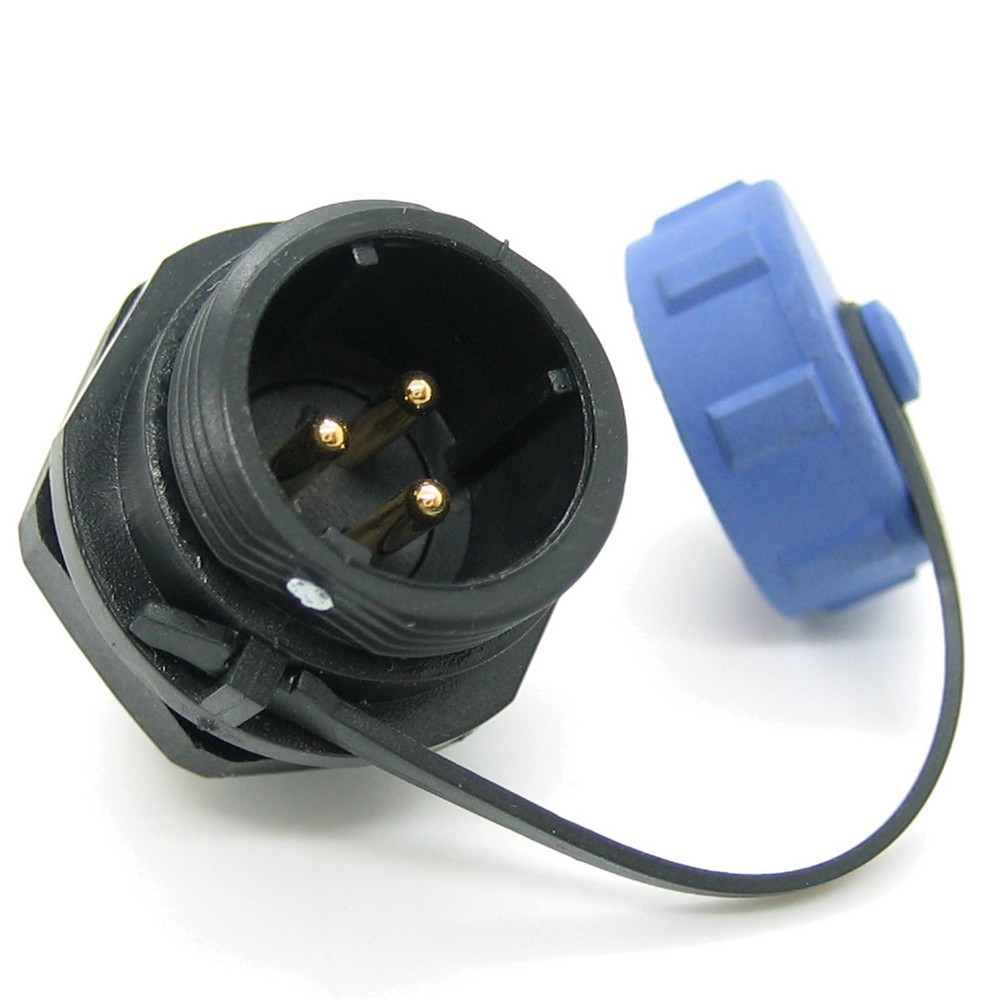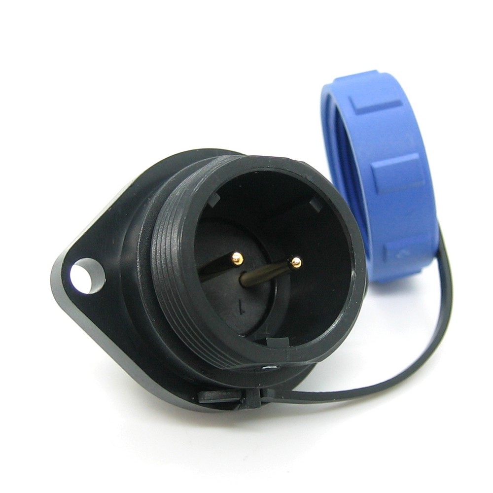 SP21, вилка, PIN: 2, IP68, пайка на панель, 500В, с защитной крышкой