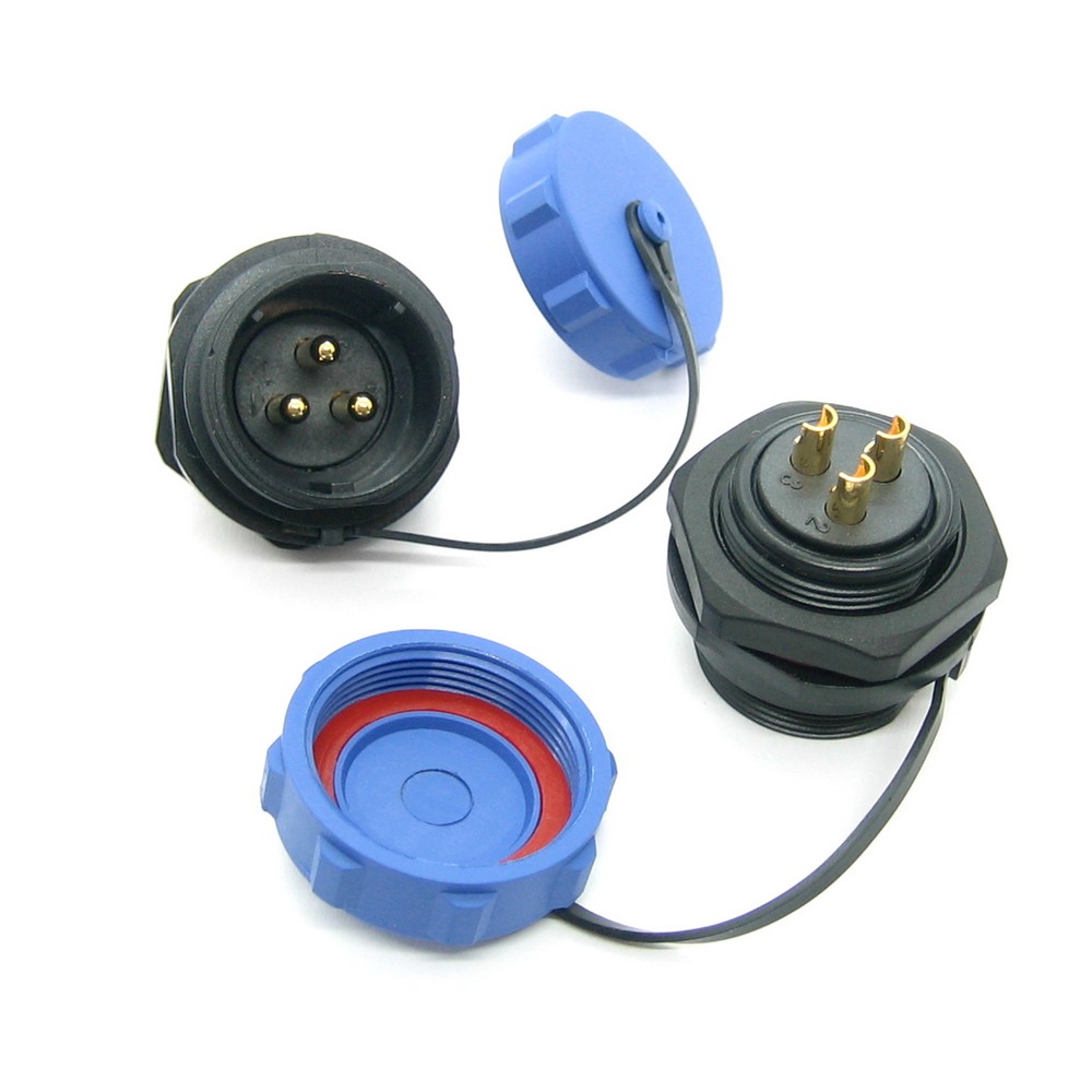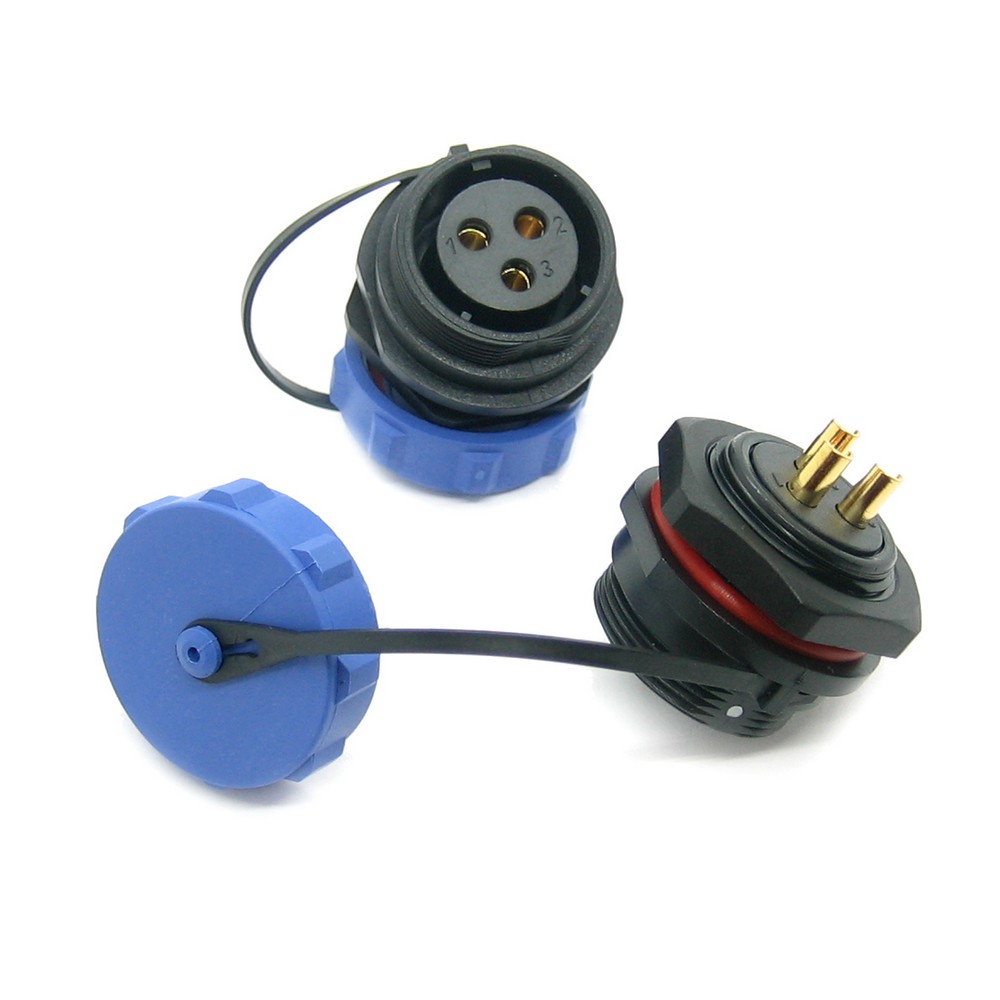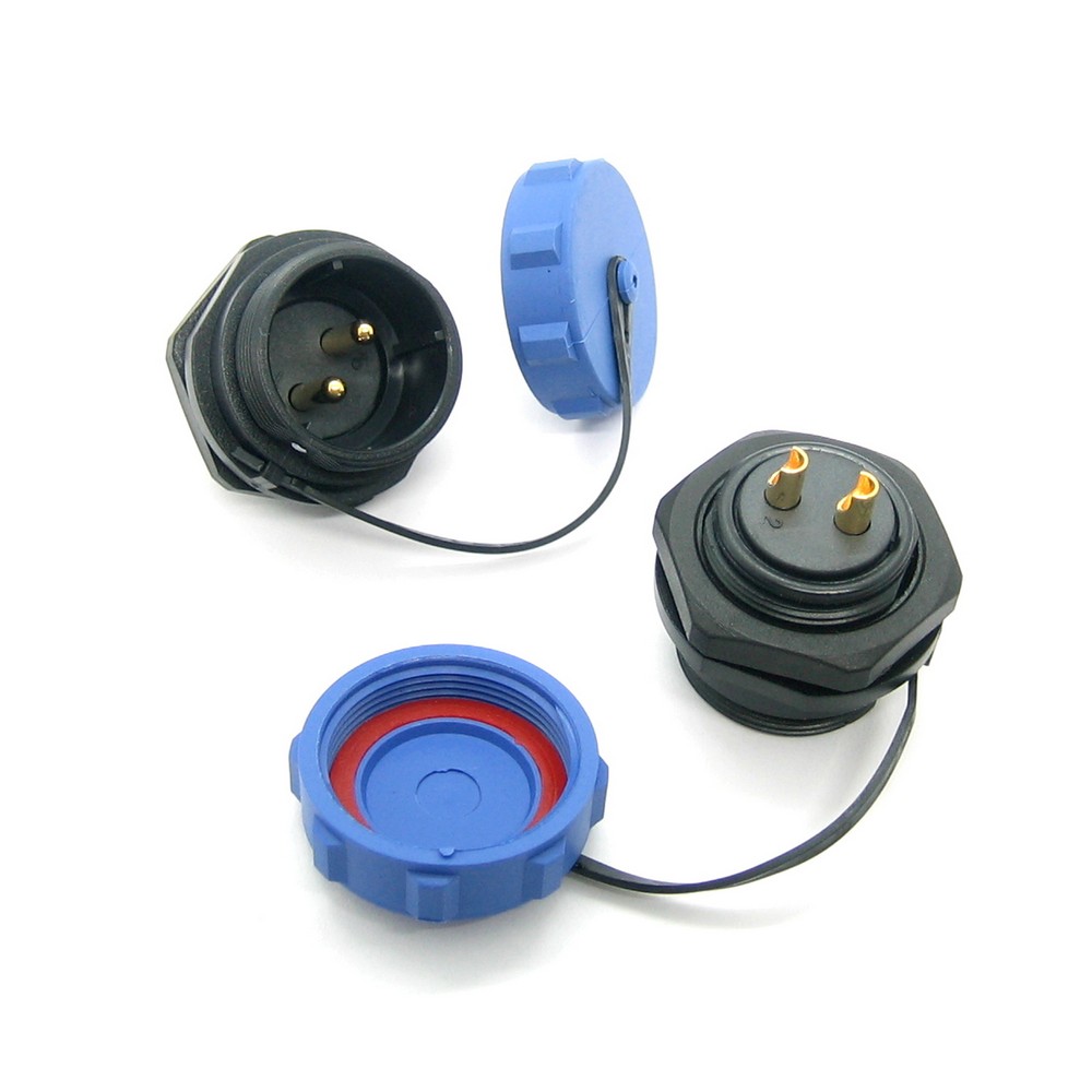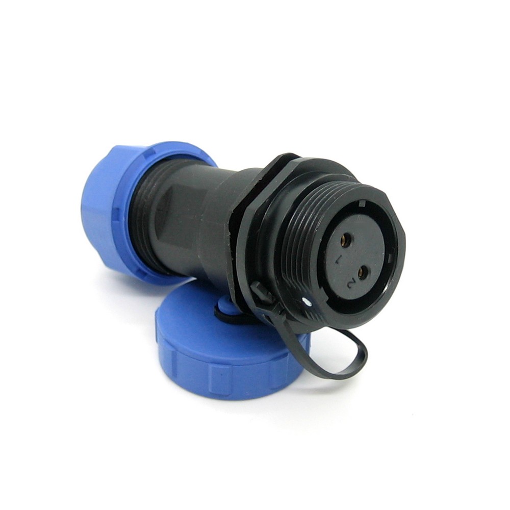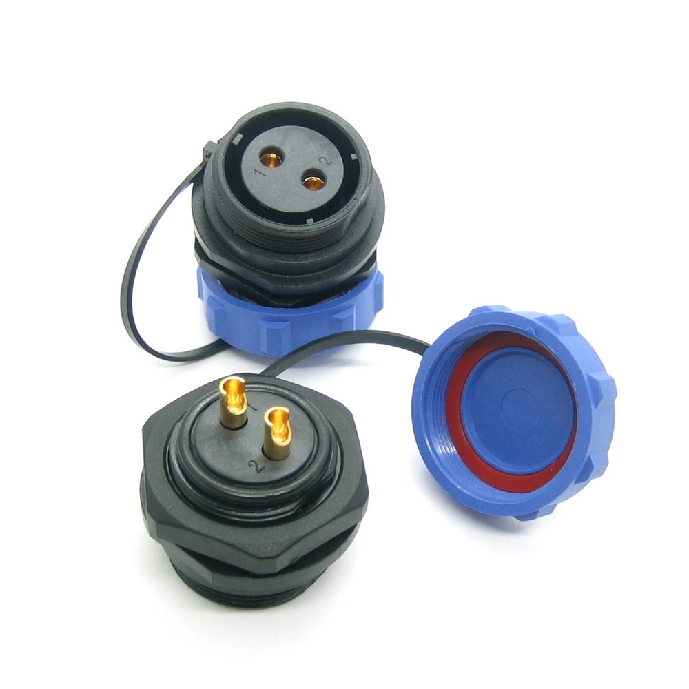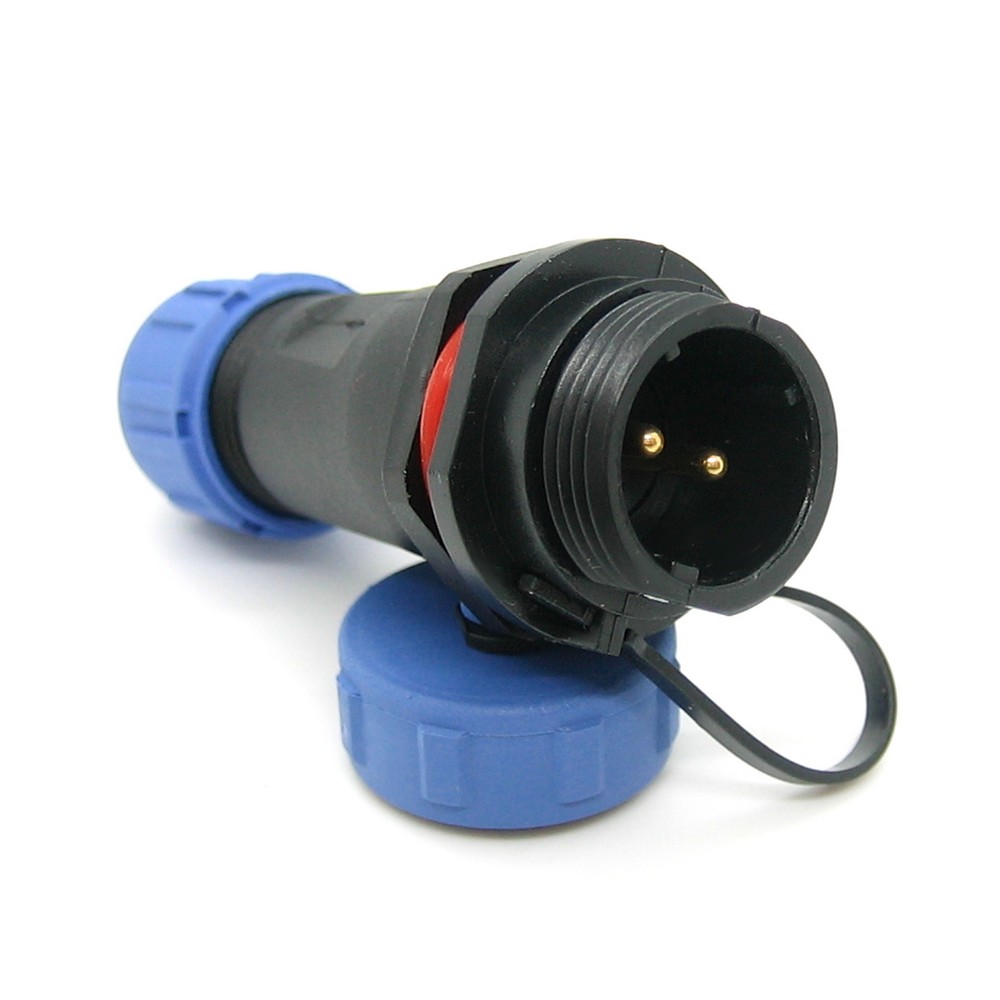 SP21, вилка, PIN: 2, IP68, пайка на панель, 500В, с защитной крышкой