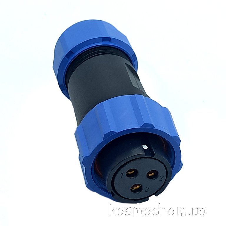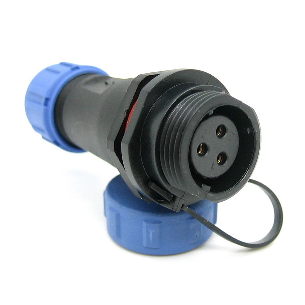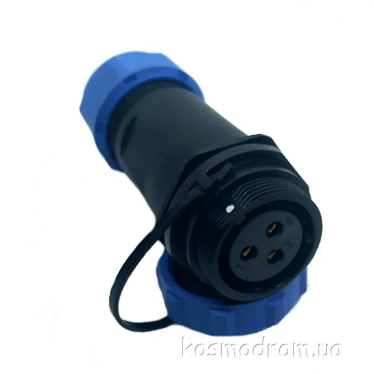 SP13, гнездо, PIN:3, IP68, диаметр кабеля: 4~6.5мм, 250В, 13A, пайка, на провод,с защитной крышкой