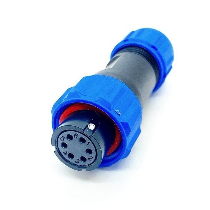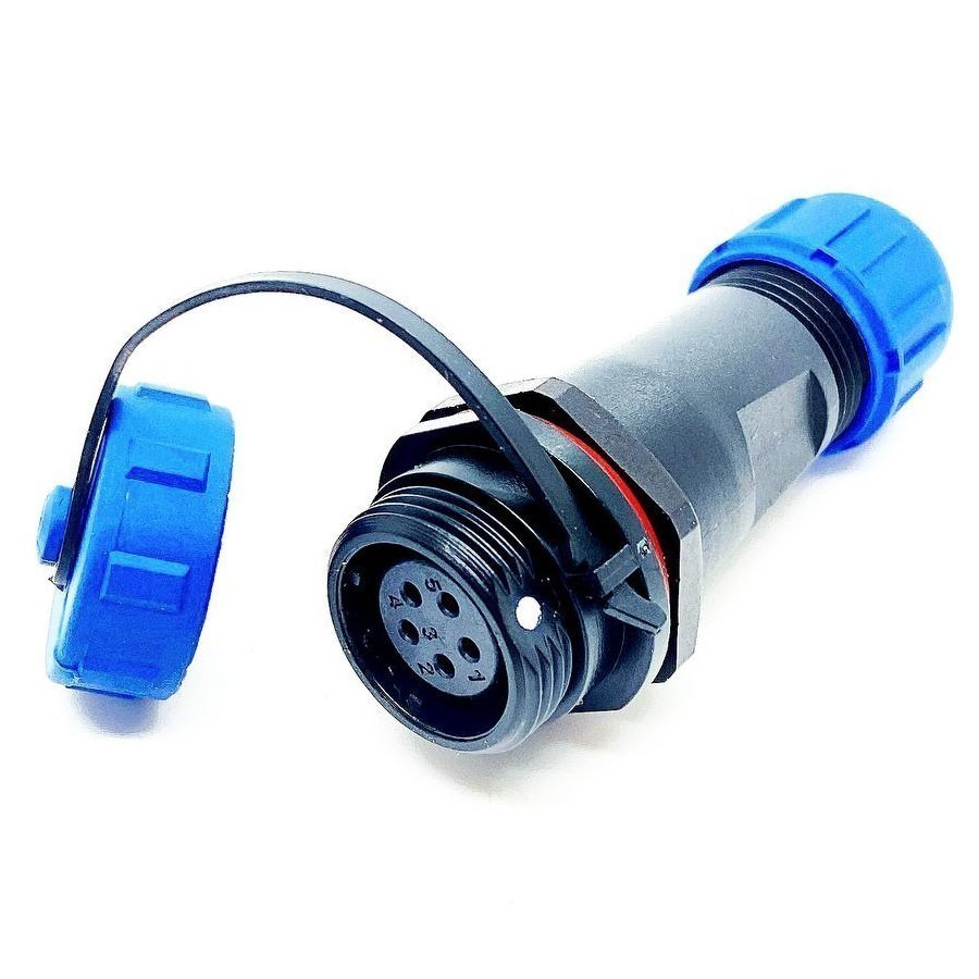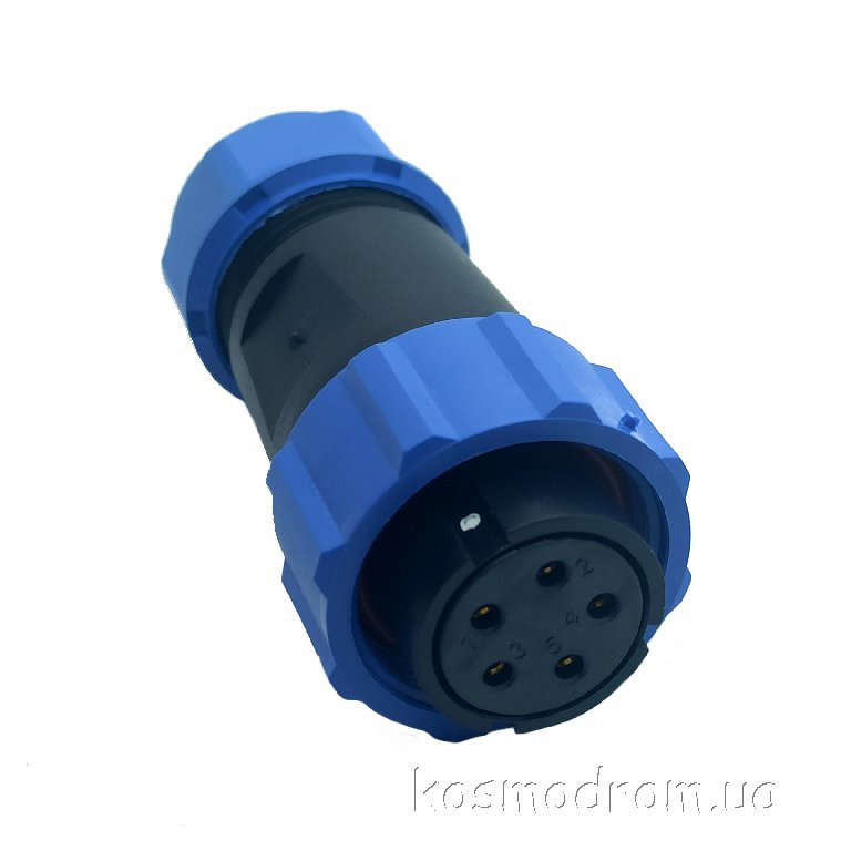 SP13, гнездо, PIN:6, IP68, диаметр кабеля: 4~6.5мм, 250В, 13A, пайка, на провод,с защитной крышкой