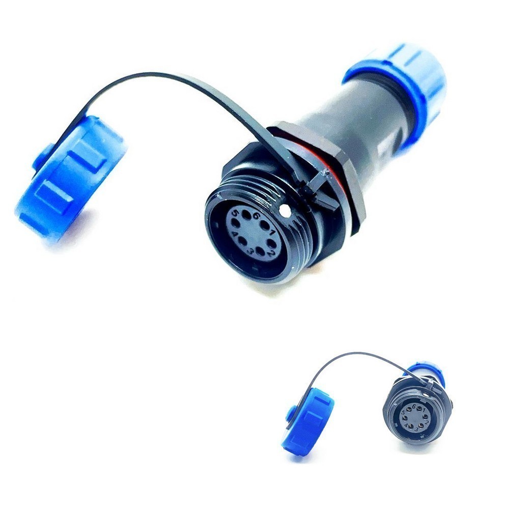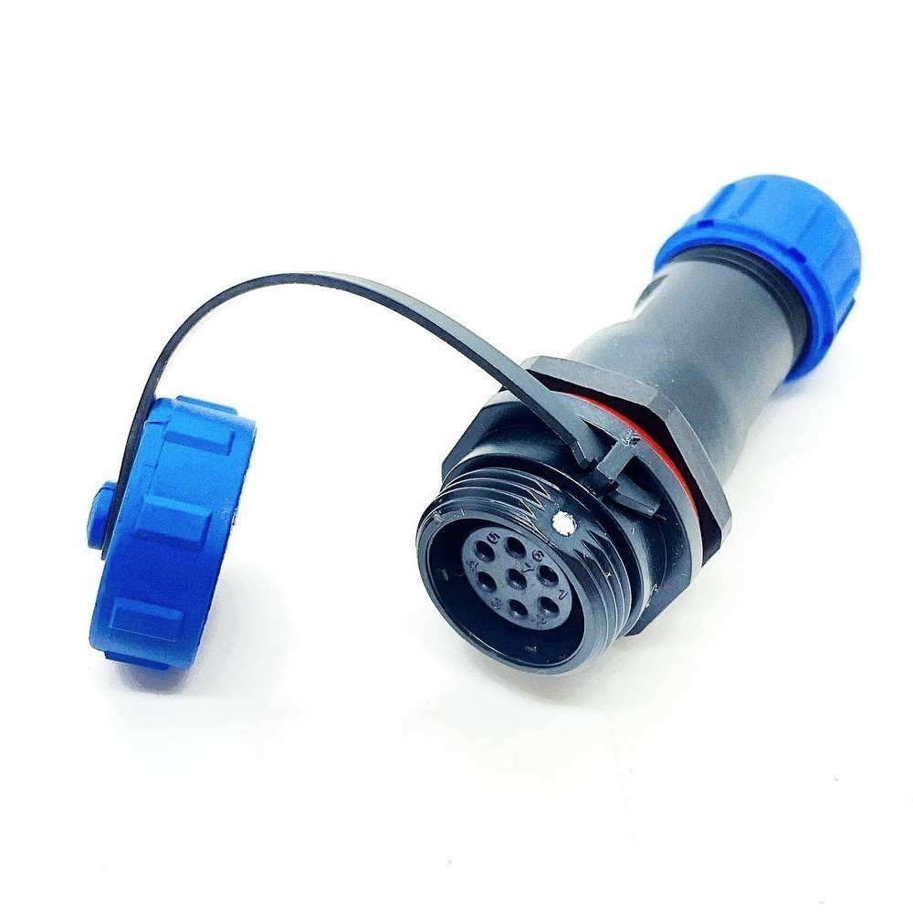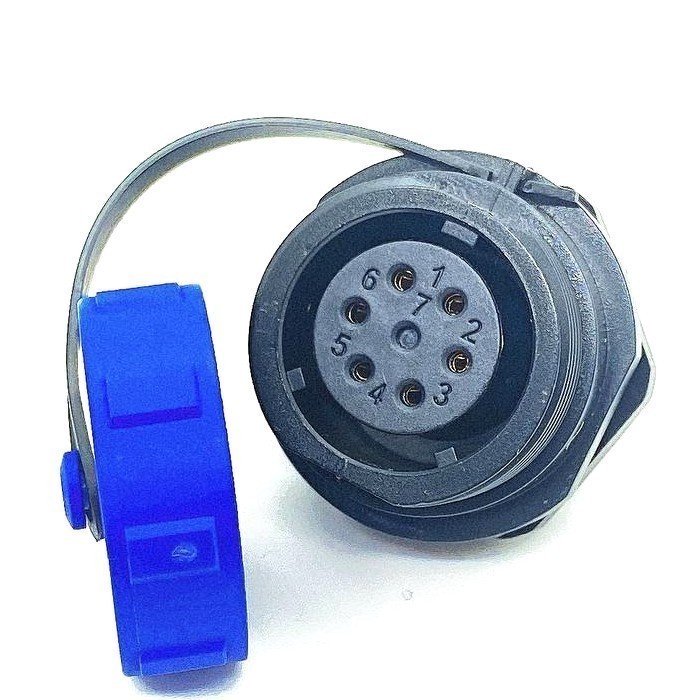 SP13, гнездо, PIN:7, IP68, диаметр кабеля: 4~6.5мм, 250В, 13A, пайка, на провод,с защитной крышкой