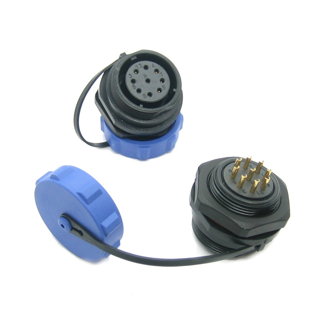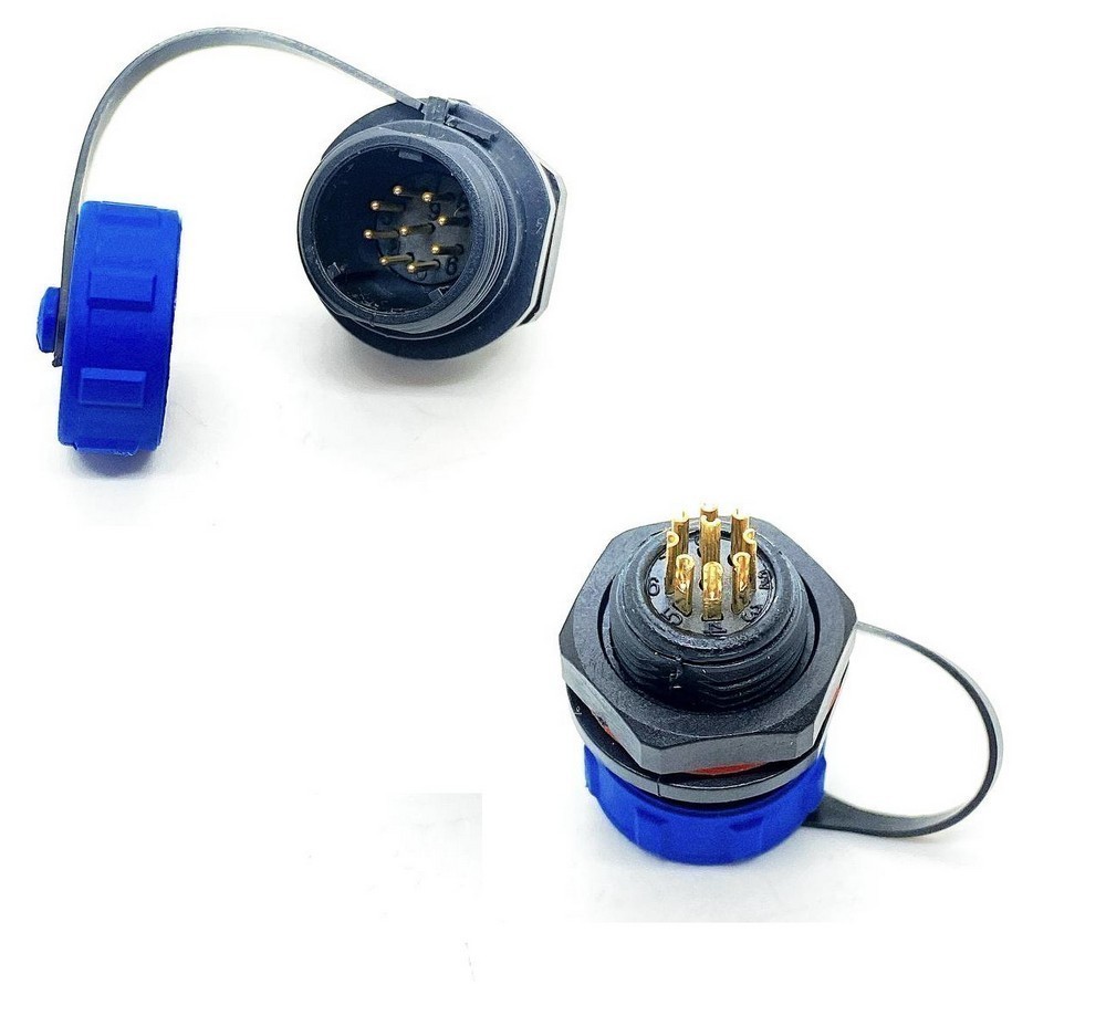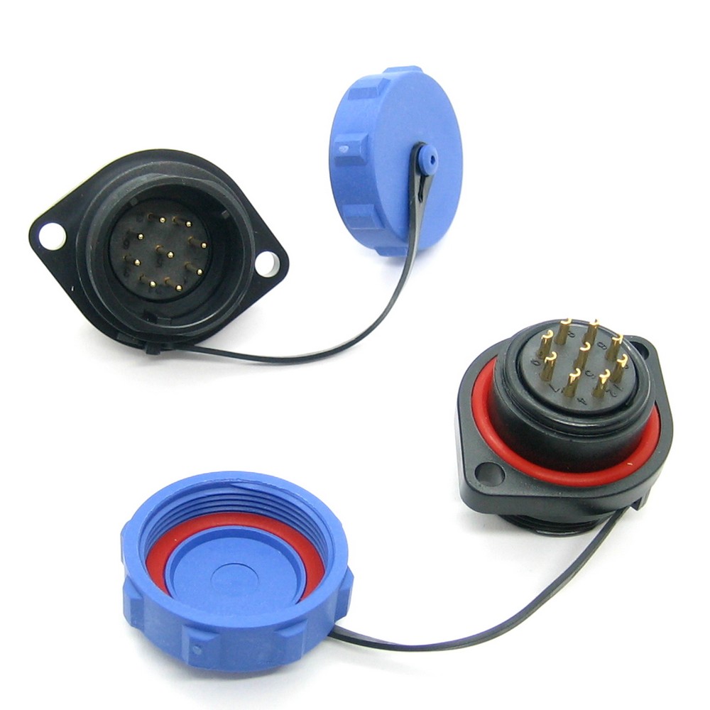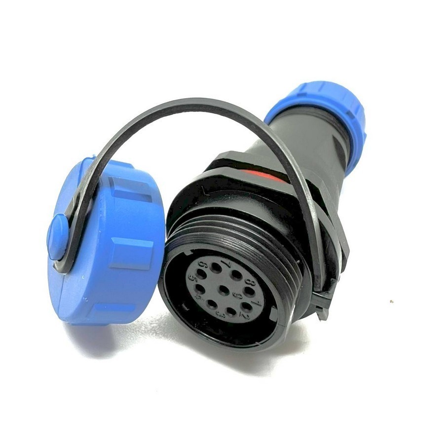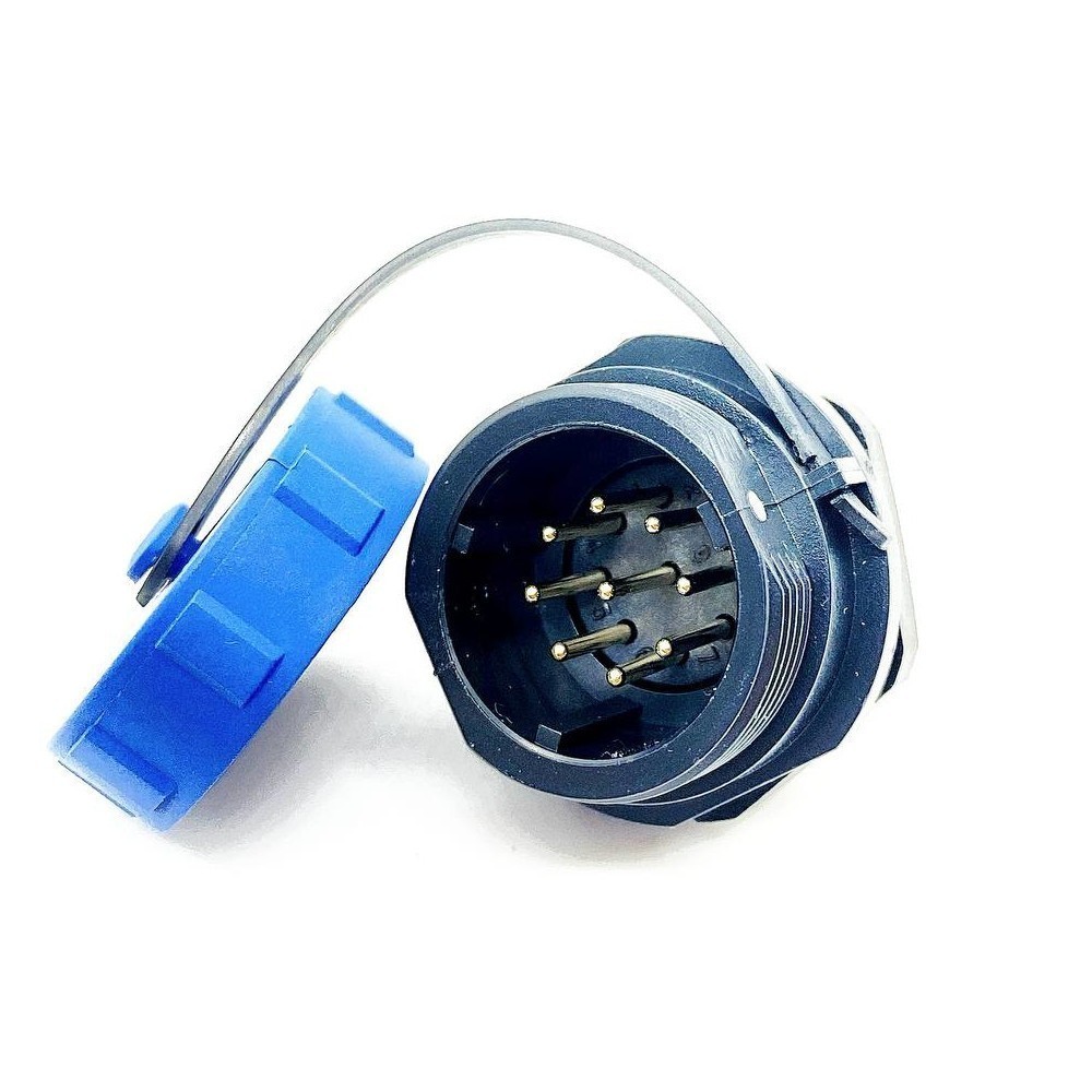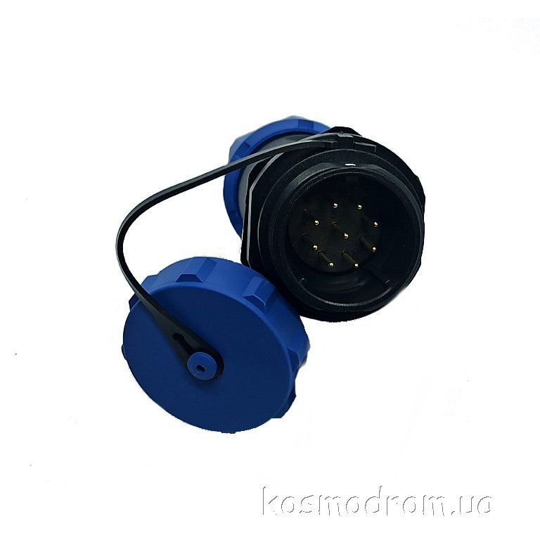 SP13, вилка, PIN:9, IP68, 250В, 13A, пайка на панель,с защитной крышкой