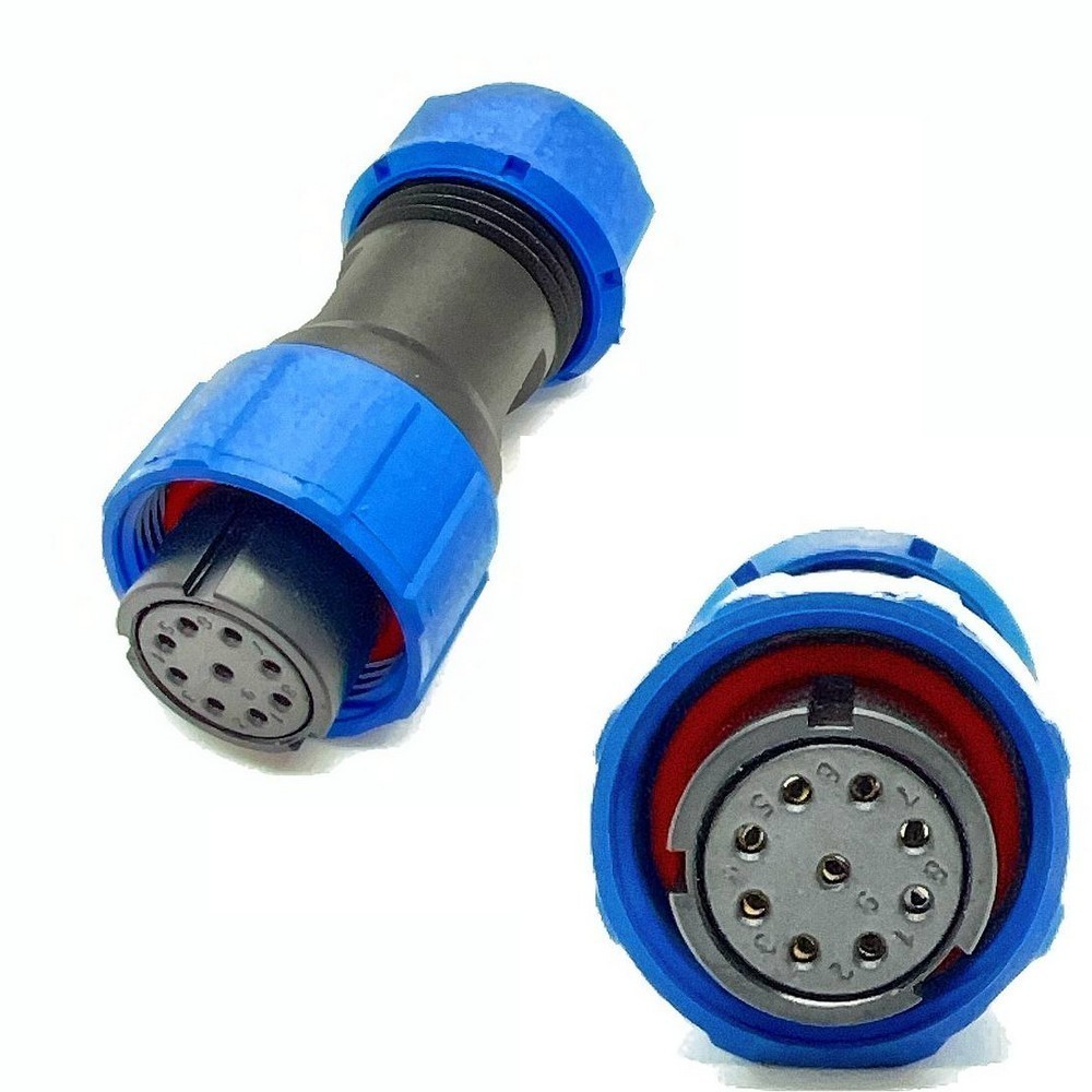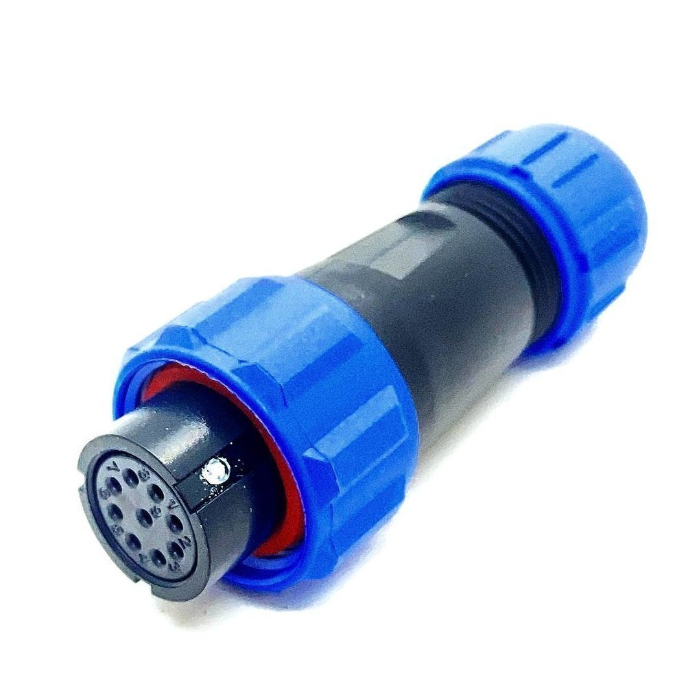 SP13, гнездо, PIN:9, IP68, диаметр кабеля: 4~6.5мм, 250В, 13A, пайка, на провод,с защитной крышкой