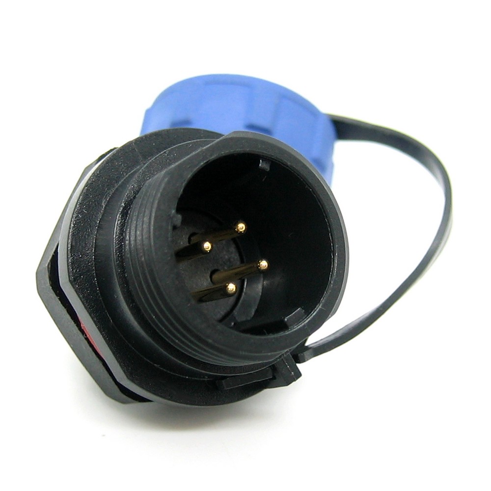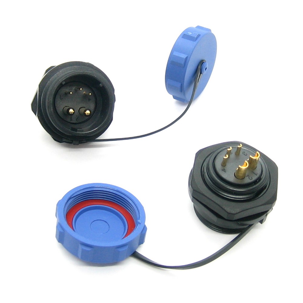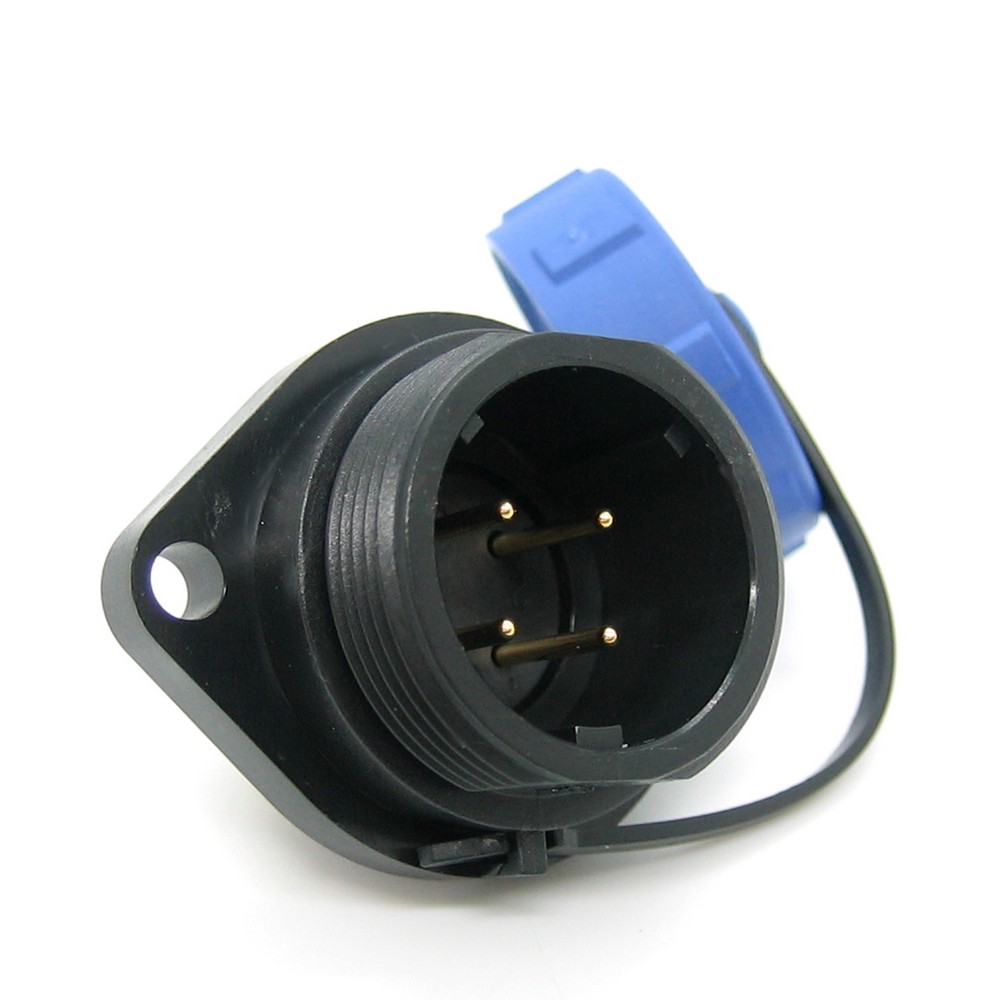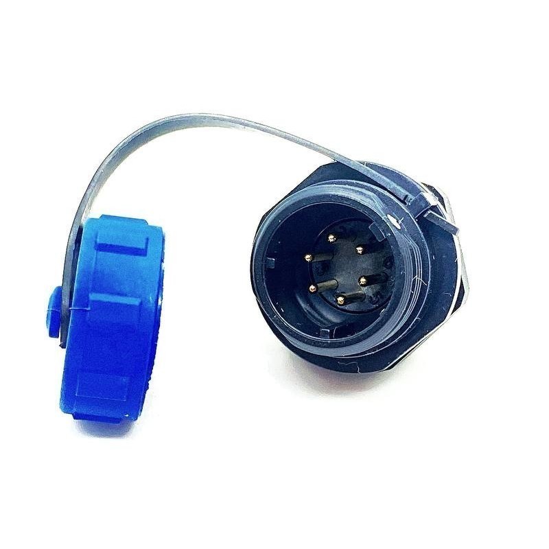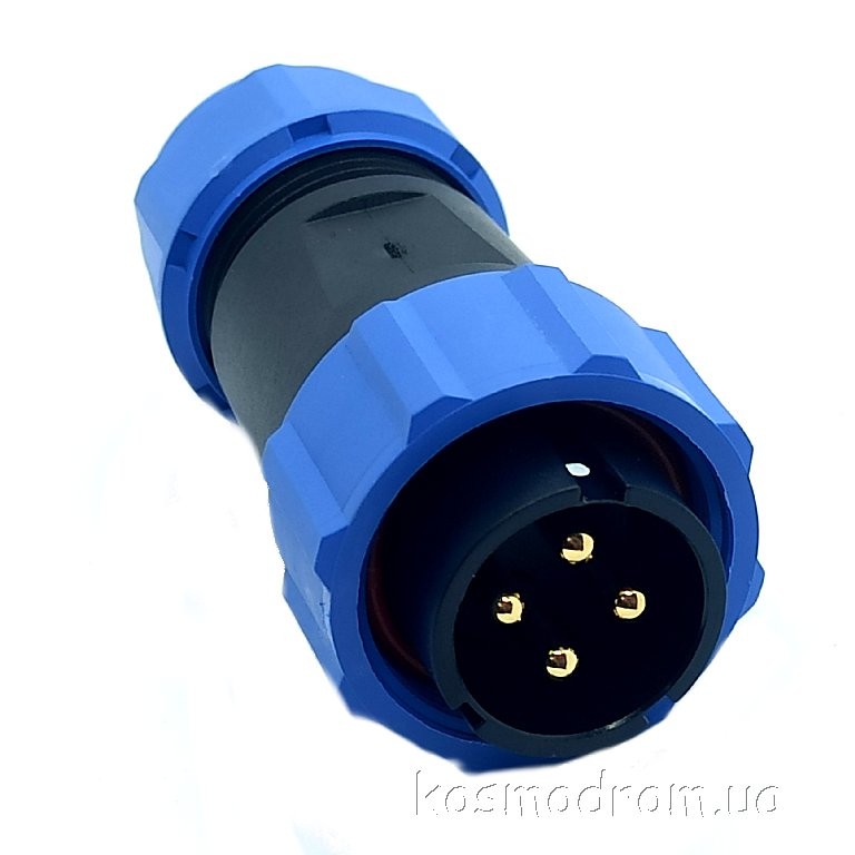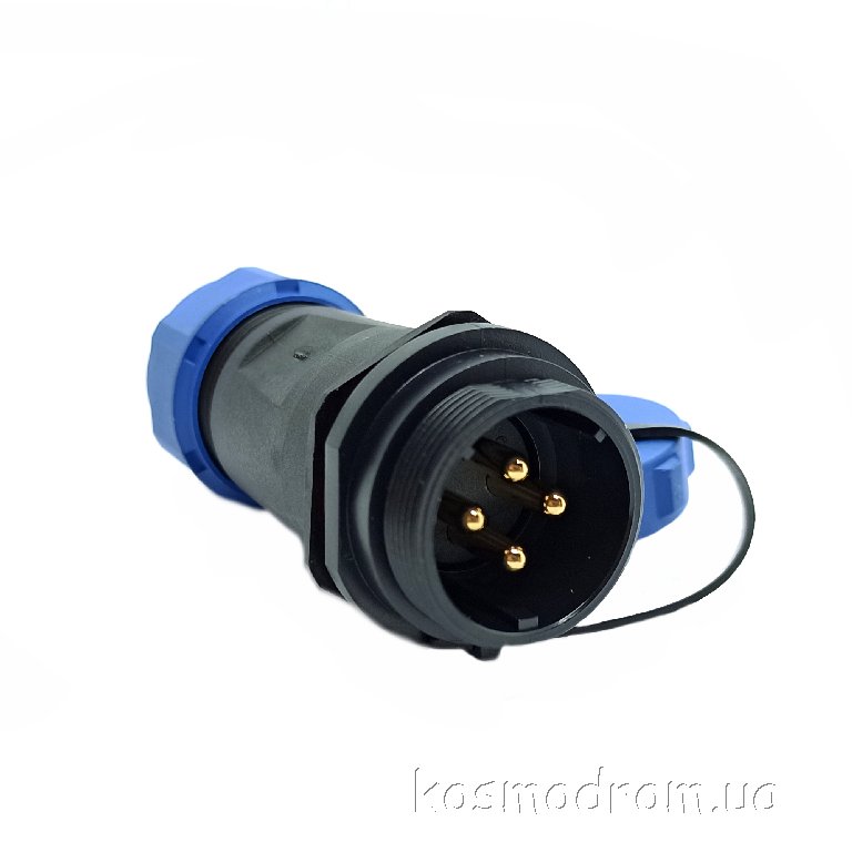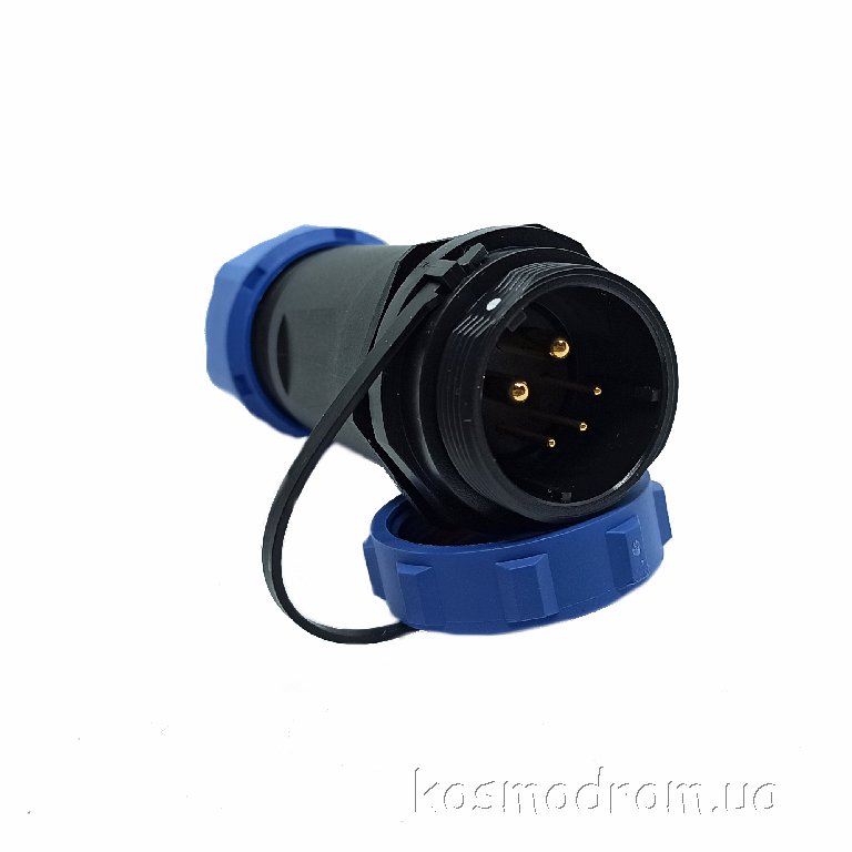 SP13, вилка, PIN:4, IP68, 200В, 5A, пайка на панель,с защитной крышкой
