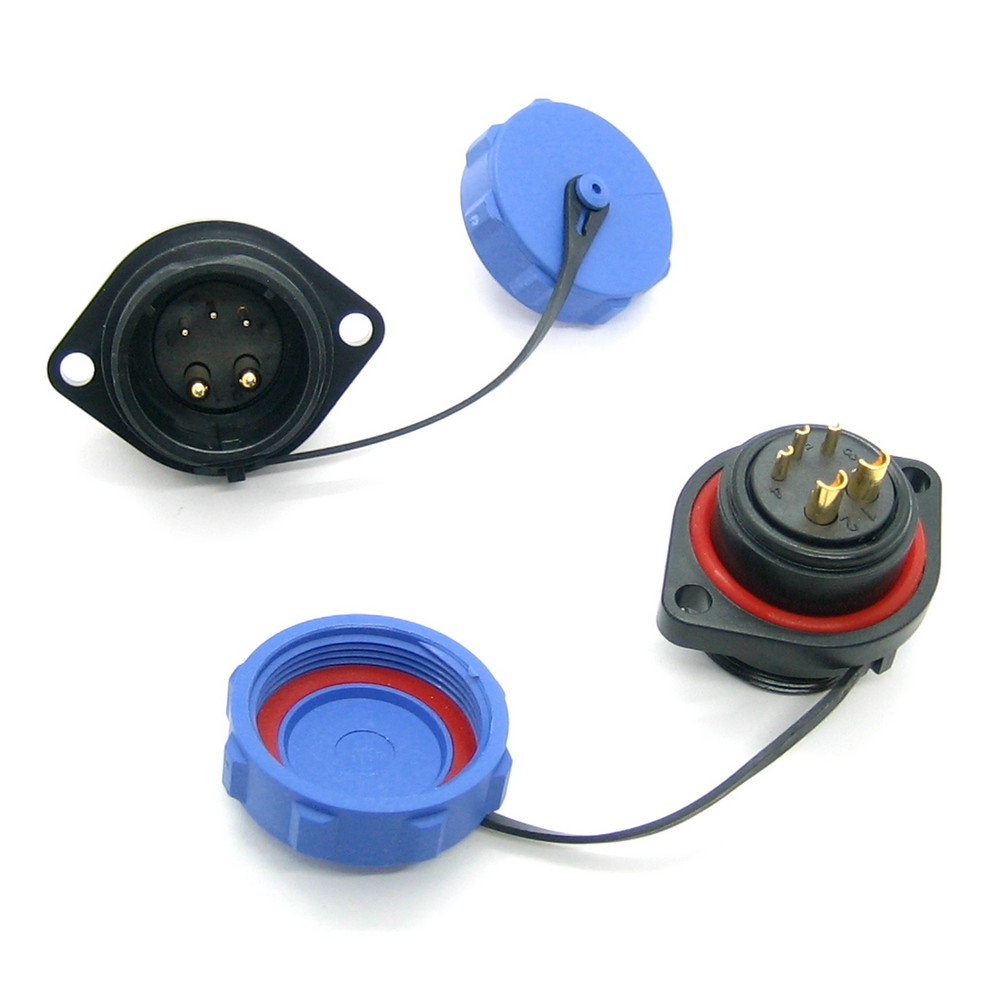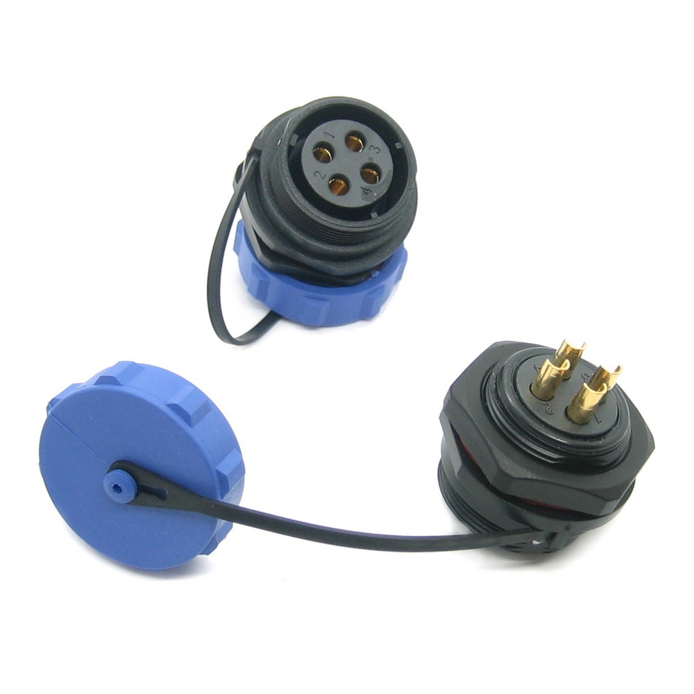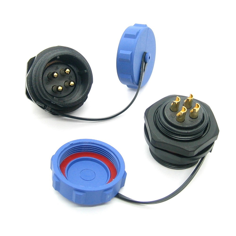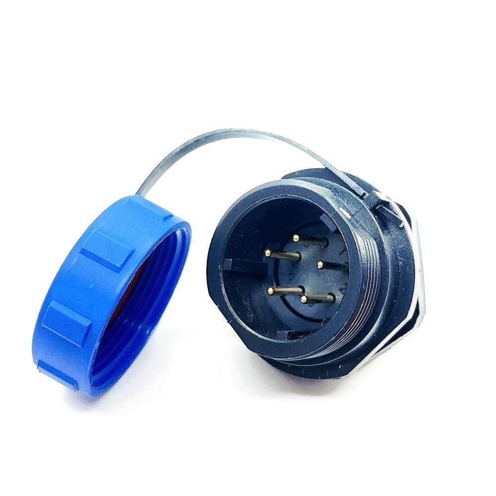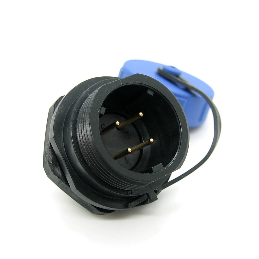 SP13, вилка, PIN:4, IP68, 200В, 5A, пайка на панель,с защитной крышкой