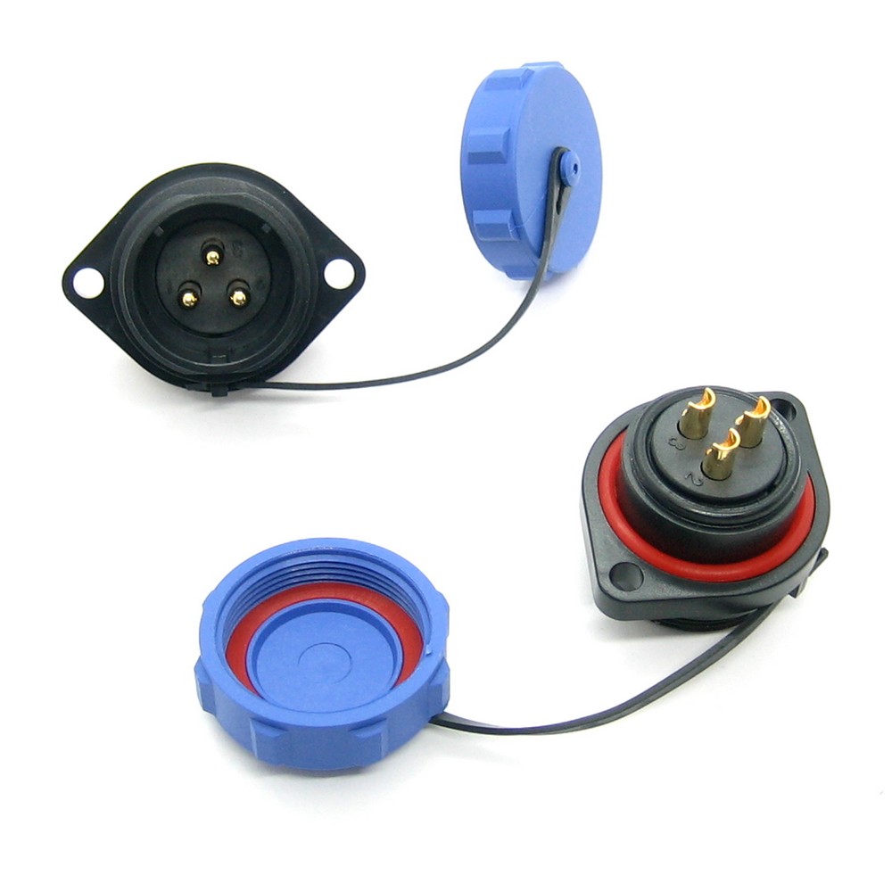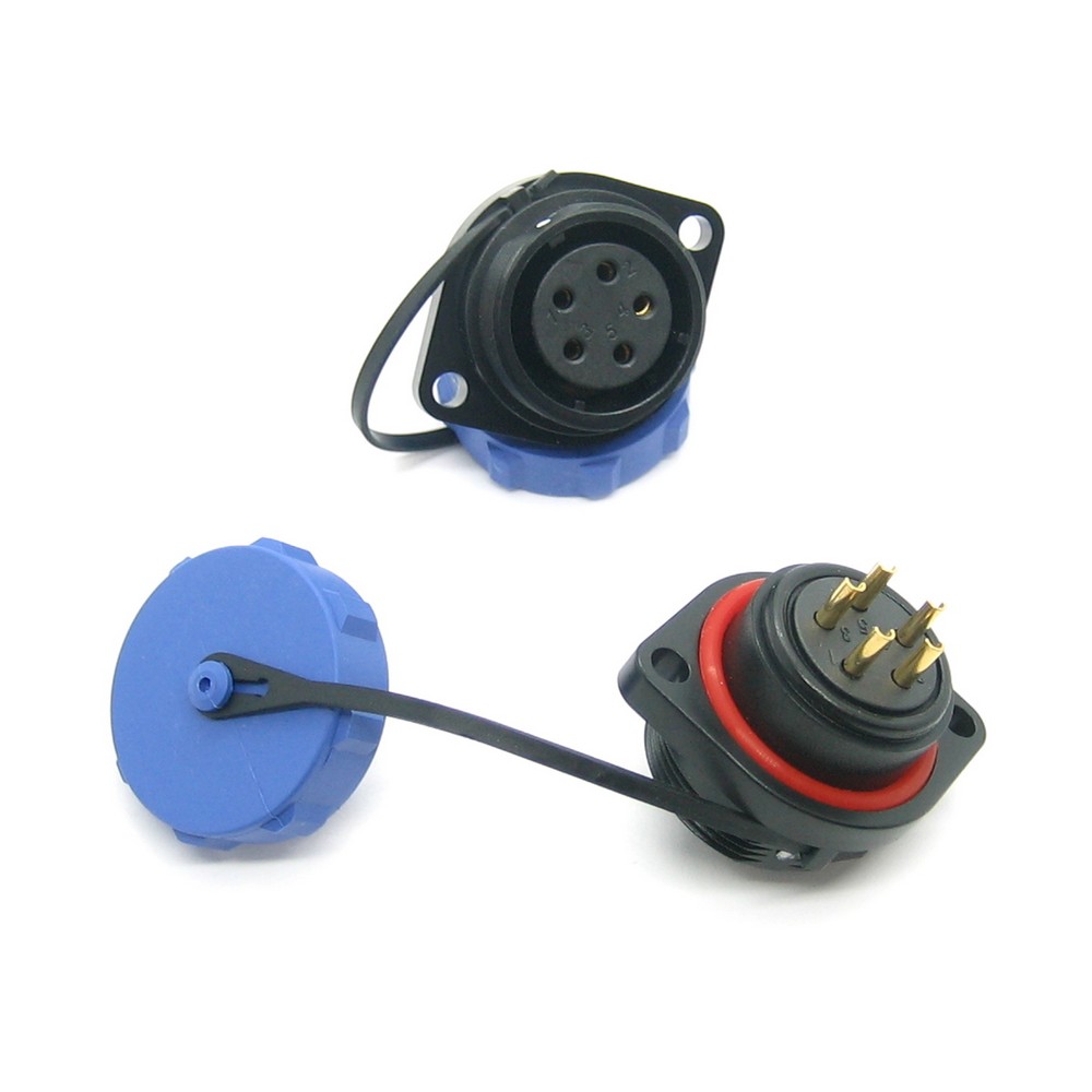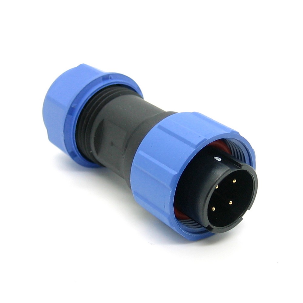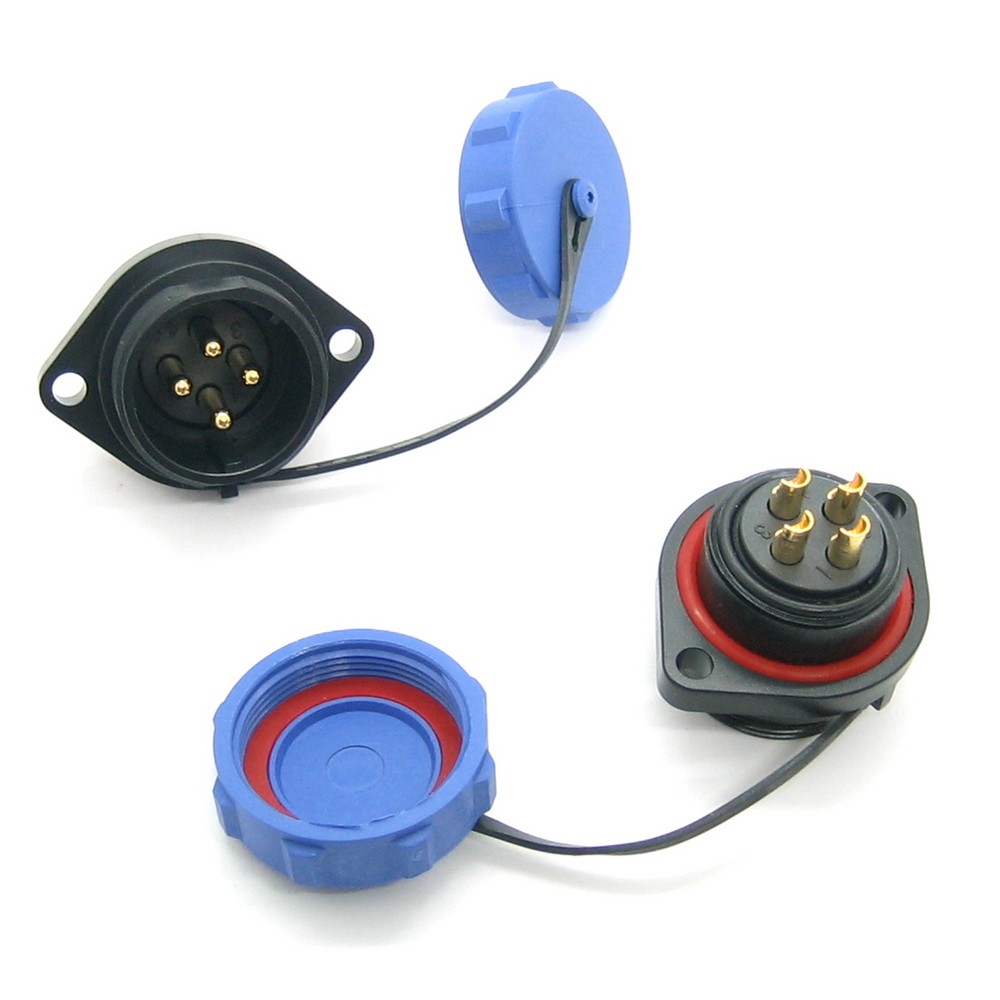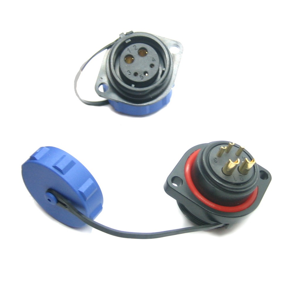 SP13, вилка, PIN:4, IP68, 200В, 5A, пайка на панель,с защитной крышкой