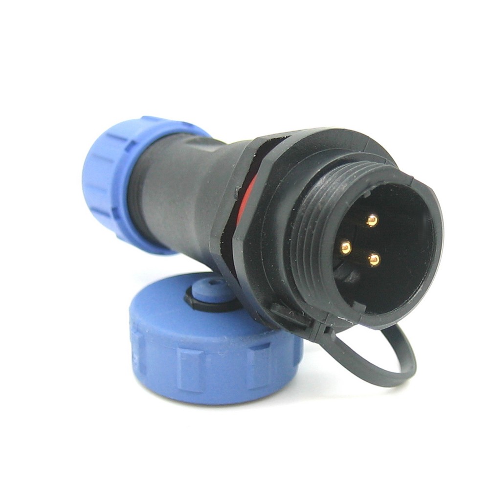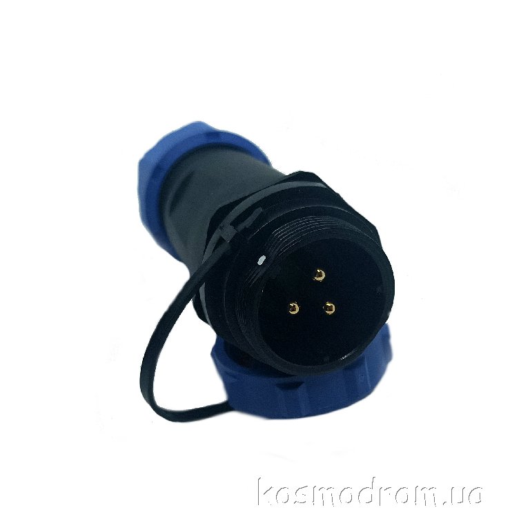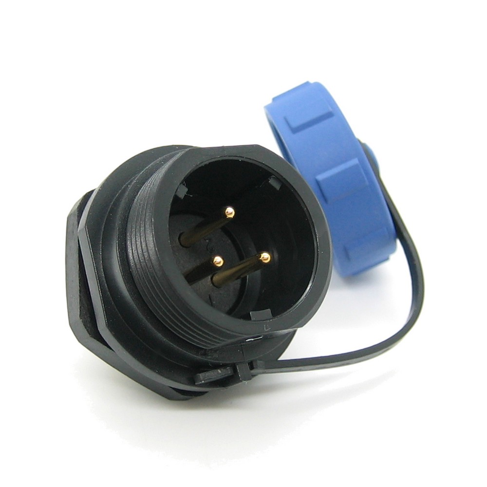 SP13, вилка, PIN:3, IP68, 250В,13A, пайка на панель,с защитной крышкой