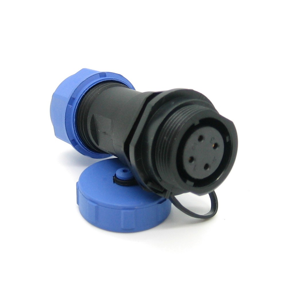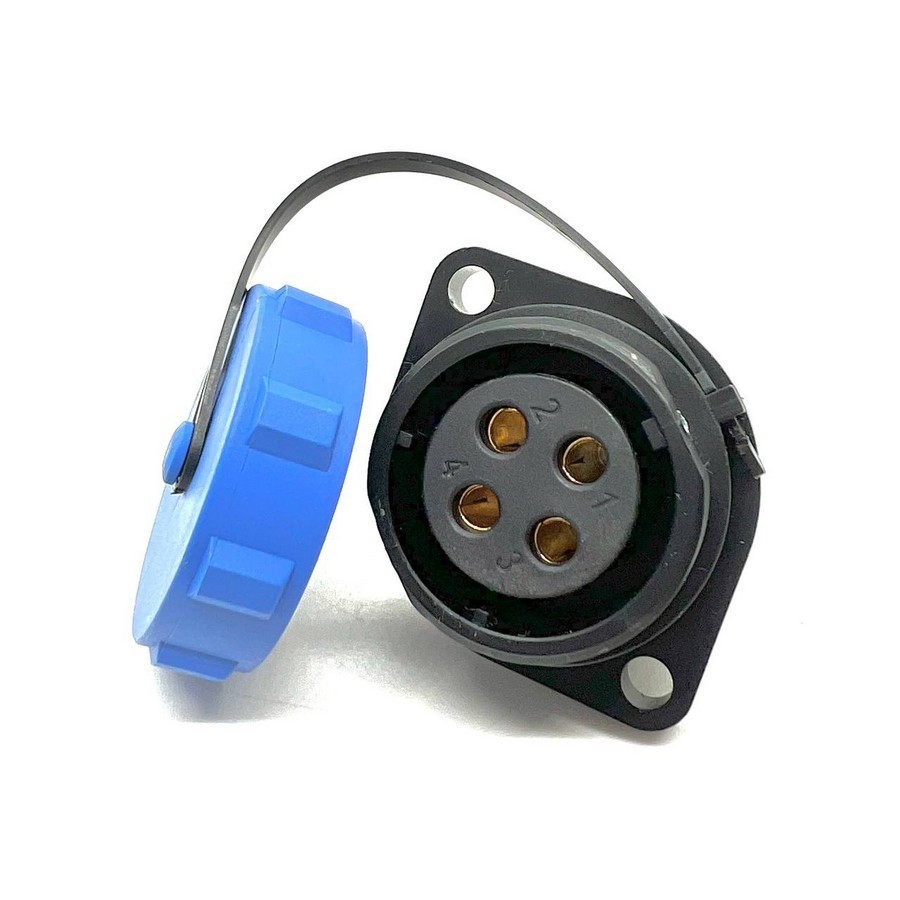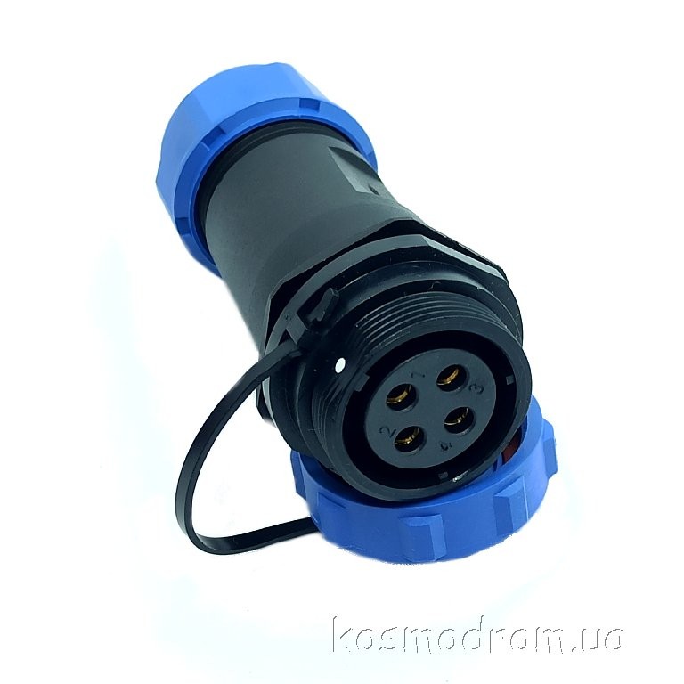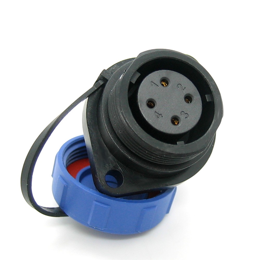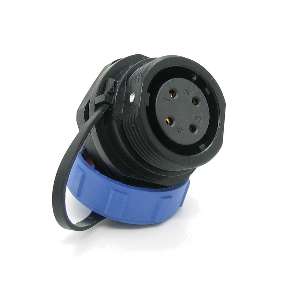 SP13, гнездо, PIN:4, IP68, 200В, 5A, пайка на панель,с защитной крышкой