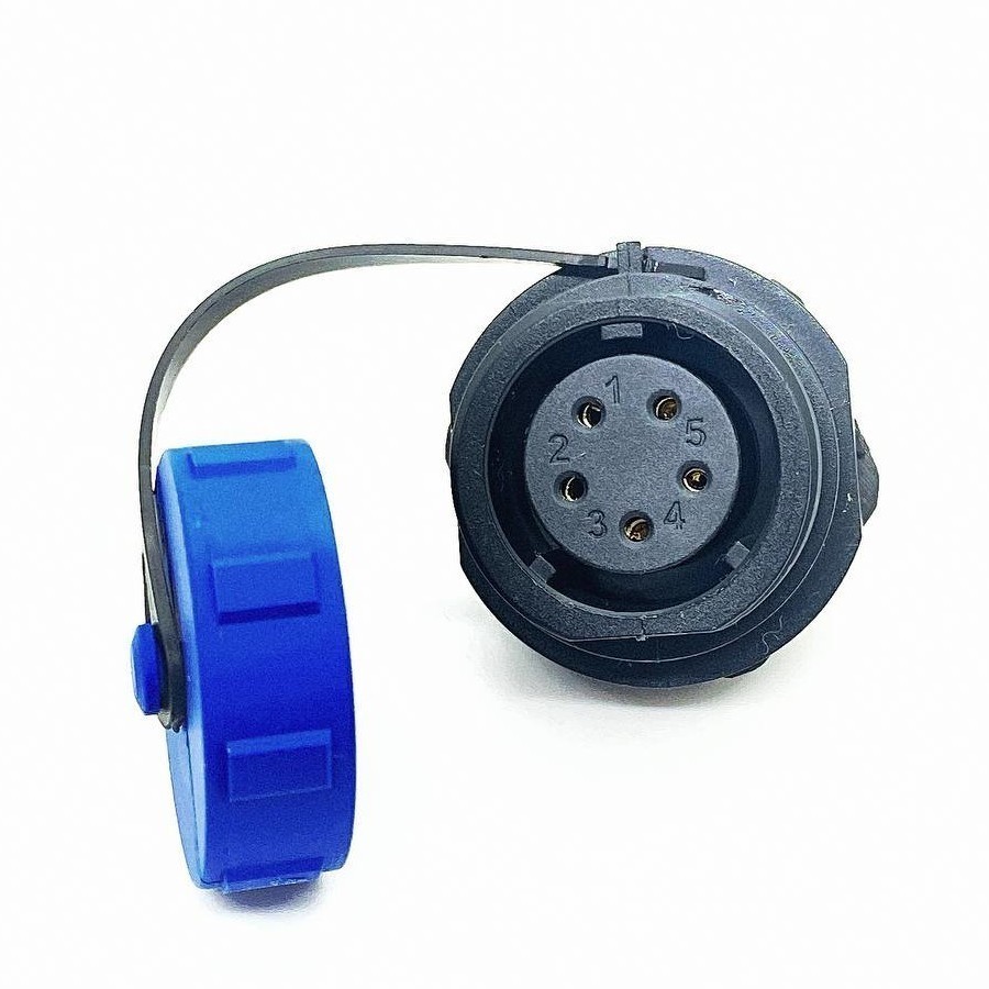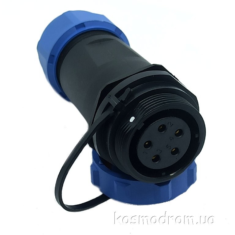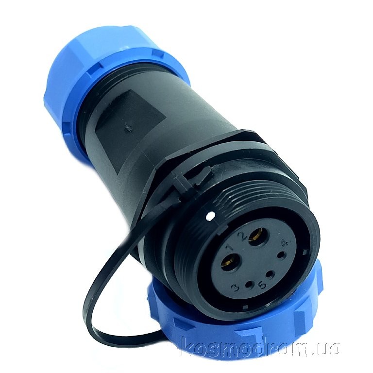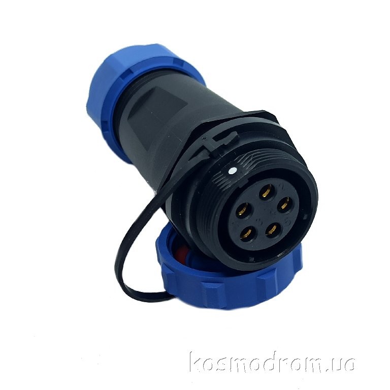 SP13, гнездо, PIN:5, IP68, диаметр кабеля: 4~6.5мм, 250В, 13A, пайка, на провод,с защитной крышкой