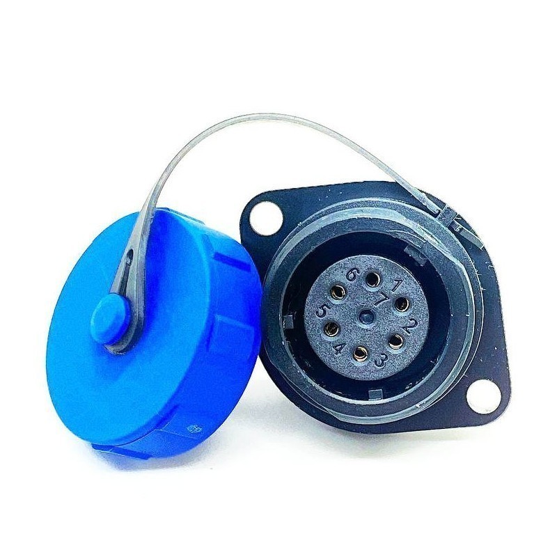 SP13, гнездо, PIN:7, IP68, 250В, 13A, пайка на панель,с защитной крышкой