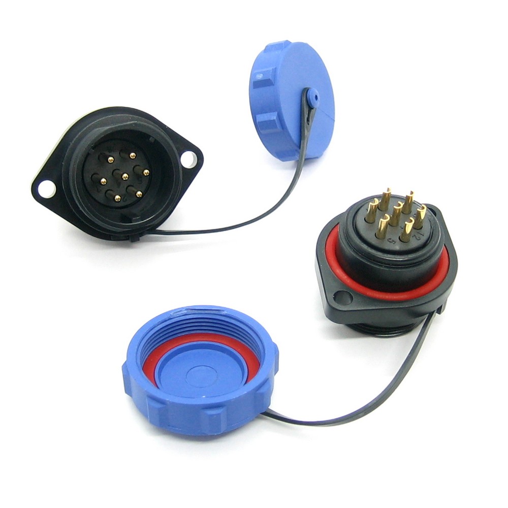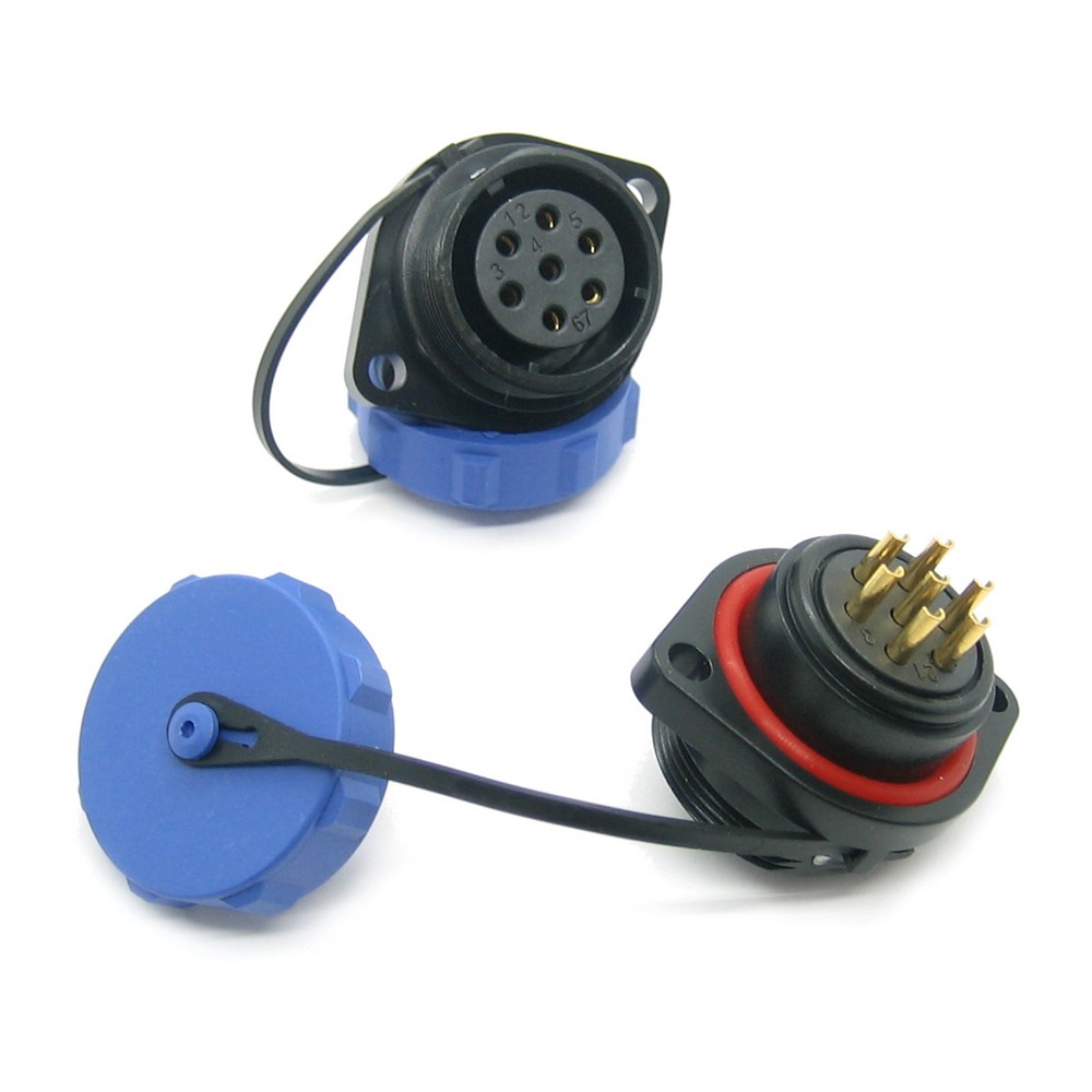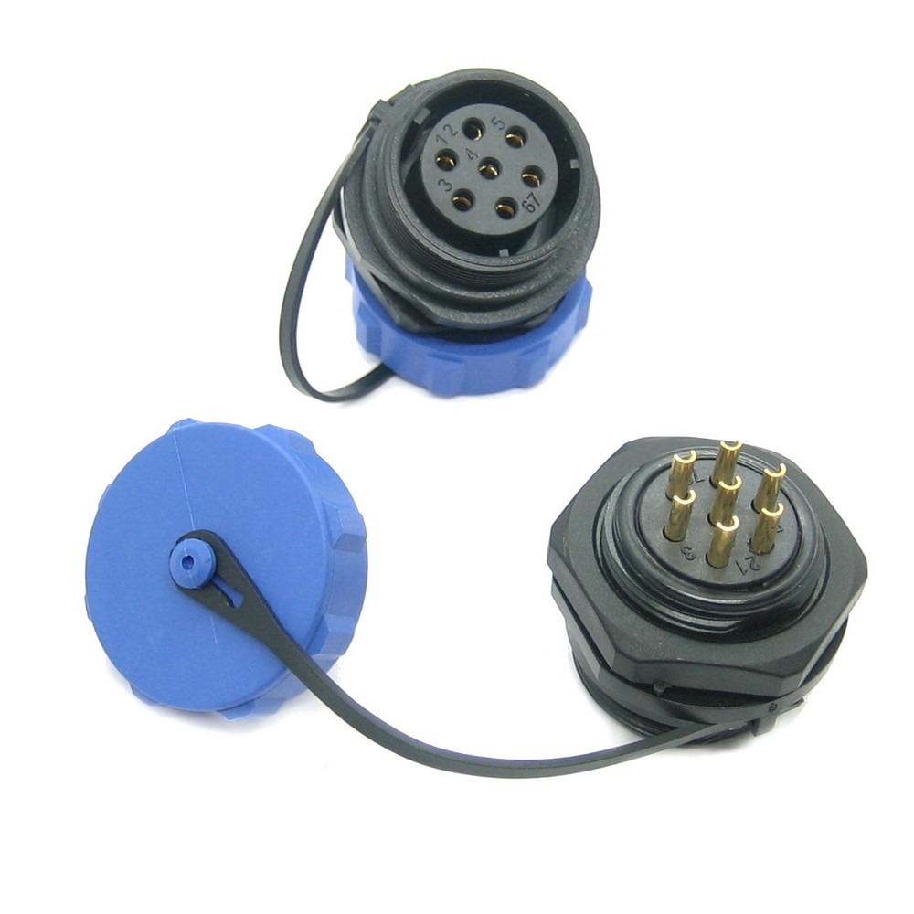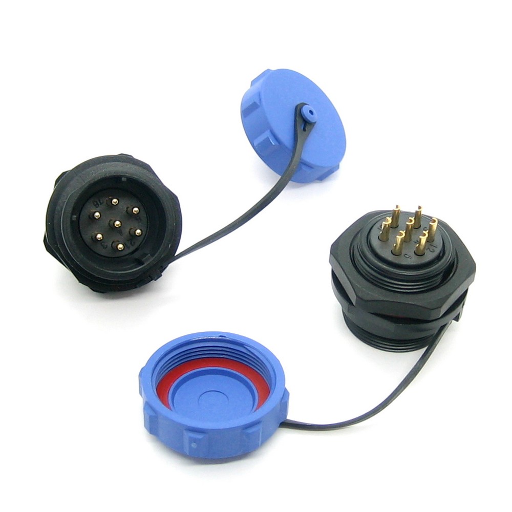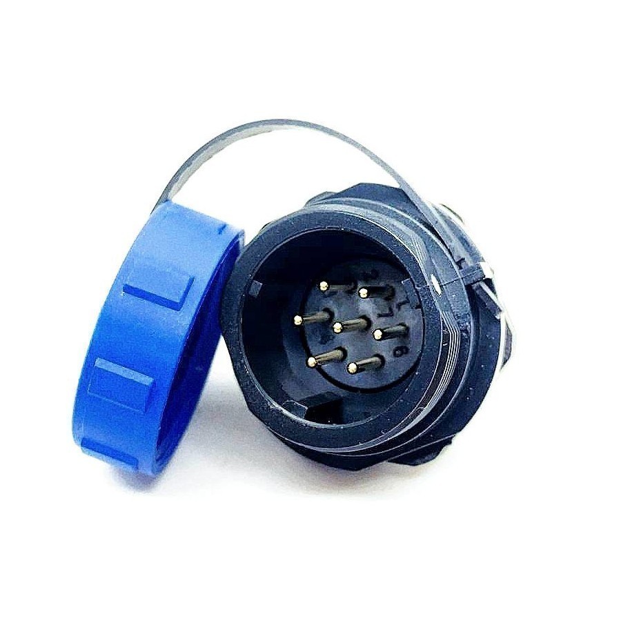 SP21, вилка, PIN: 7, IP68, пайка на панель, 500В, с защитной крышкой