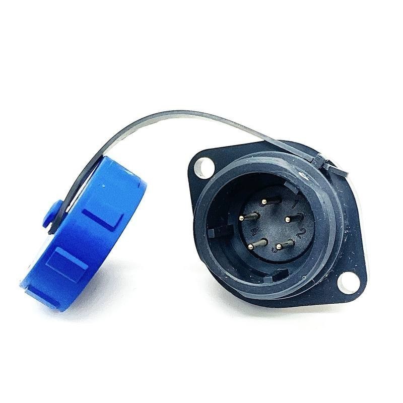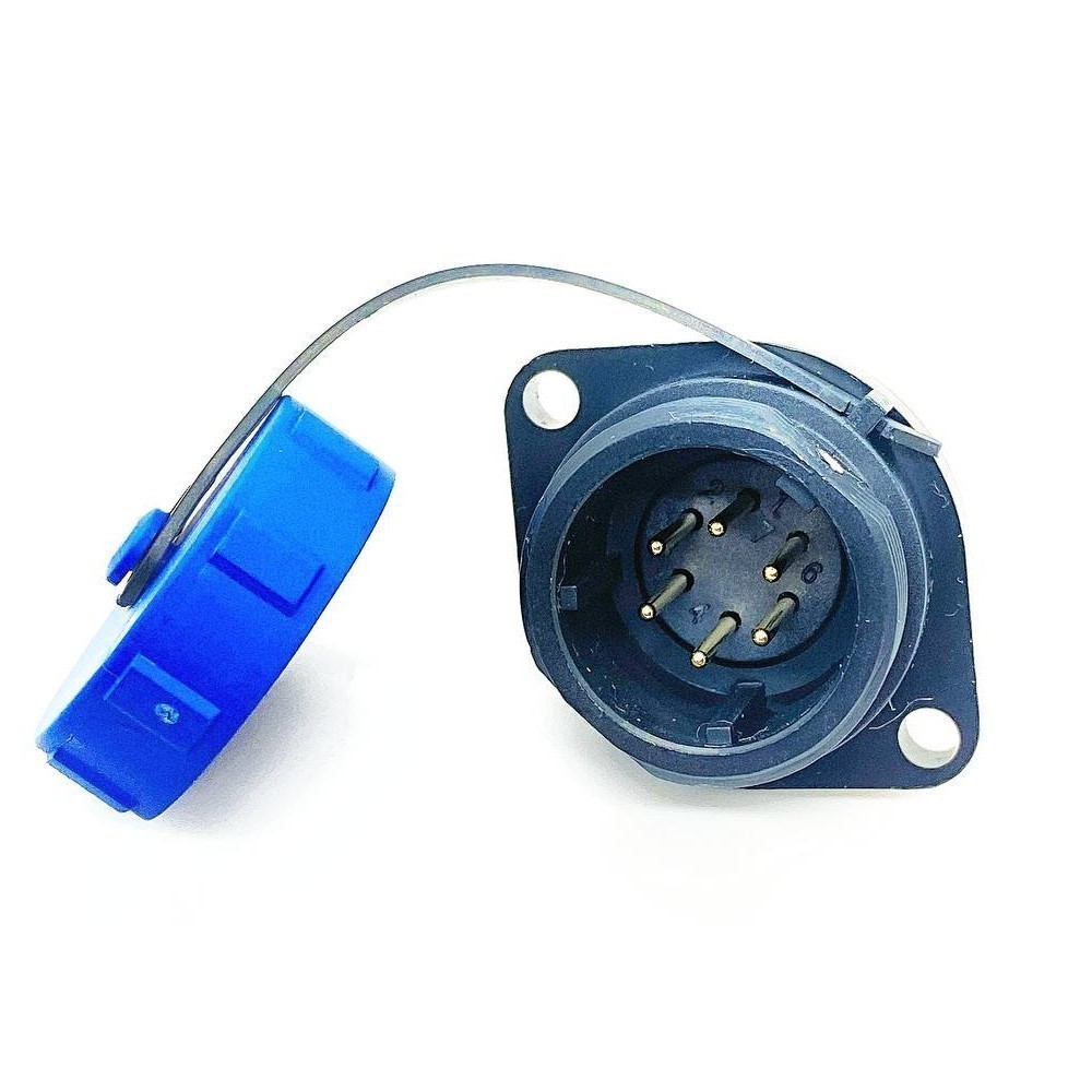 SP13, вилка, PIN:6, IP68, 250В, 13A, пайка на панель,с защитной крышкой