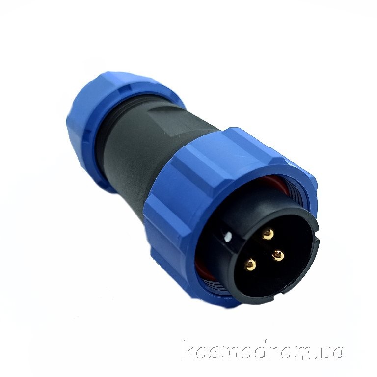 SP13, вилка, PIN:3, IP68, диаметр кабеля: 4~6.5мм, 250В, 13A, пайка, на провод,с защитной крышкой