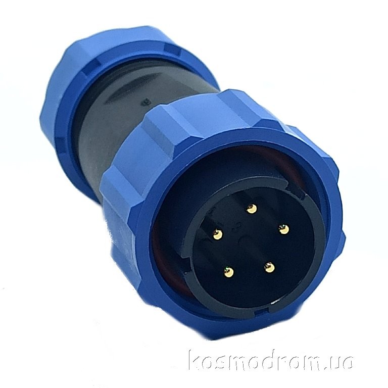 SP13, вилка, (папа), PIN:5, IP68, диаметр кабеля: 4~6.5мм, 250В, 13A, пайка, на провод