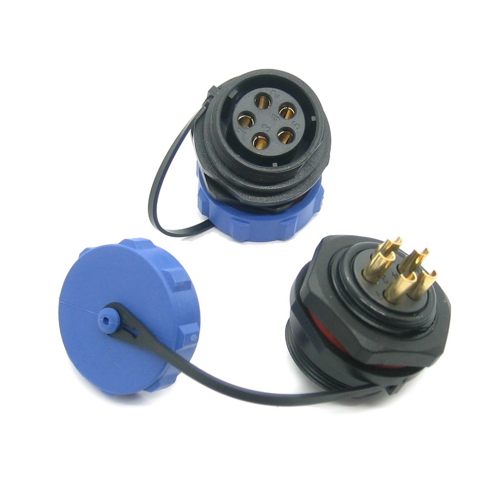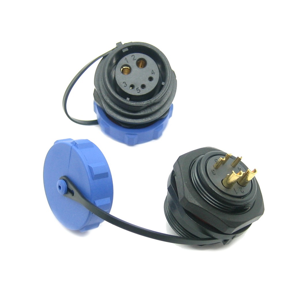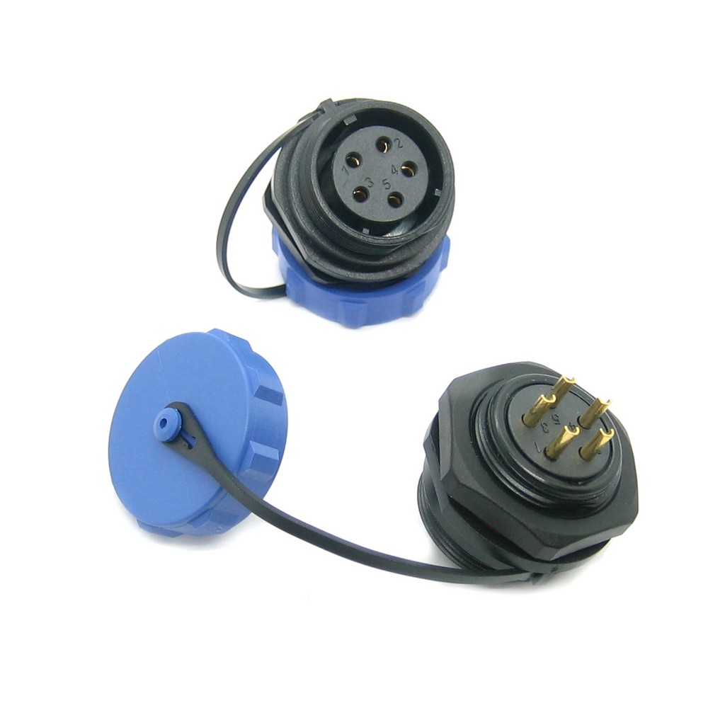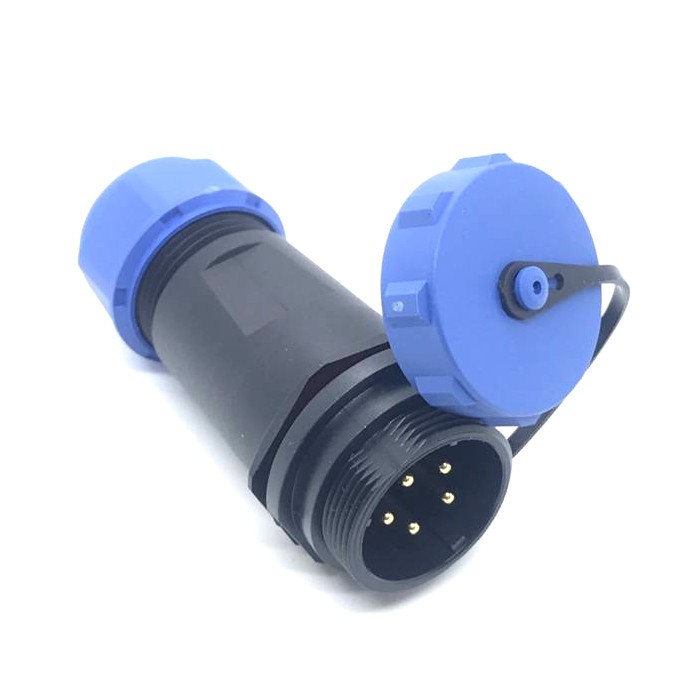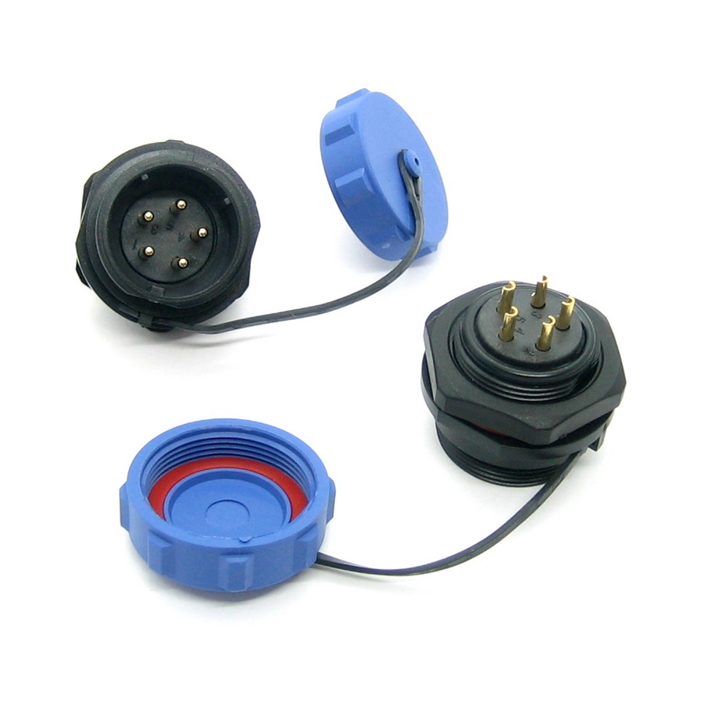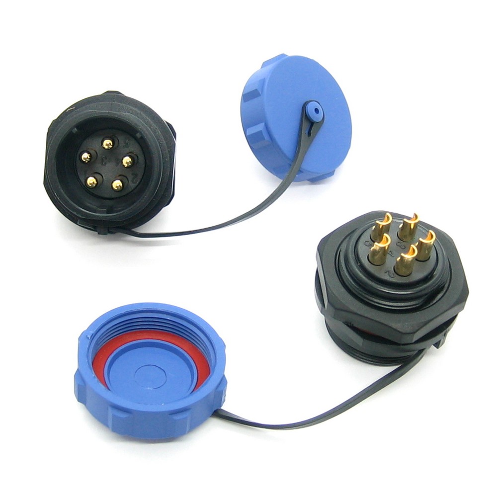 SP21, вилка, PIN: 5, IP68, пайка на панель, 500В, с защитной крышкой