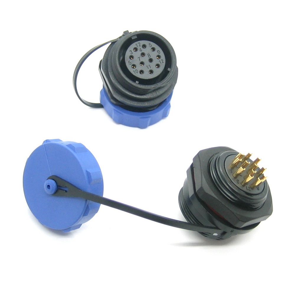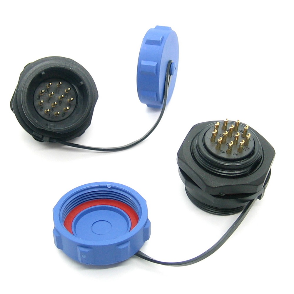 SP21, вилка, PIN: 12, IP68, пайка на панель, 400В, с защитной крышкой