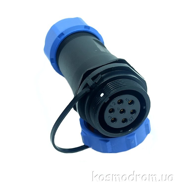 SP21, гнездо, PIN: 7, IP68, диаметр кабеля: 7...12мм, пайка, на провод, 500В с защитной крышкой