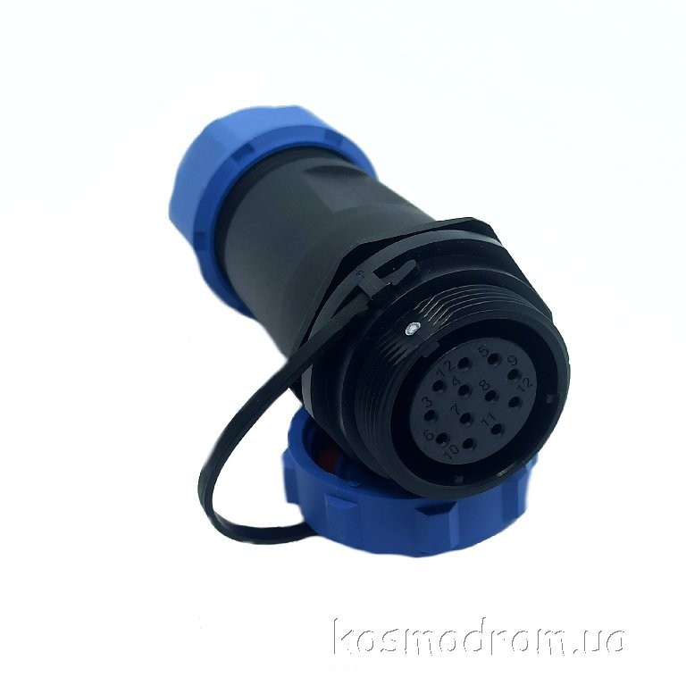 SP21, гнездо, PIN: 12, IP68, диаметр кабеля: 7...12мм, пайка, на провод, 400В с защитной крышкой