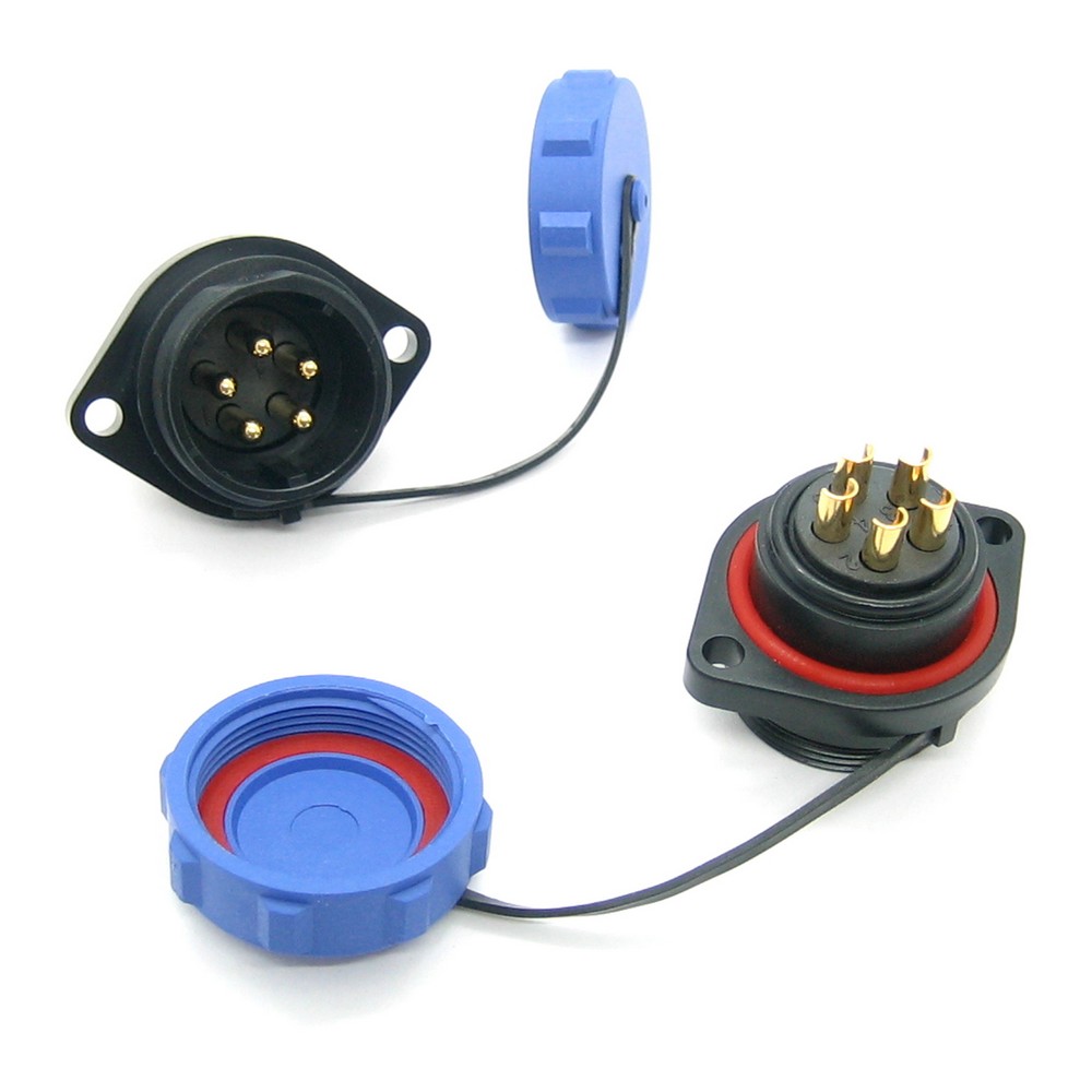 SP21, вилка, PIN: 5, IP68, пайка на панель, 500В, с фланцами