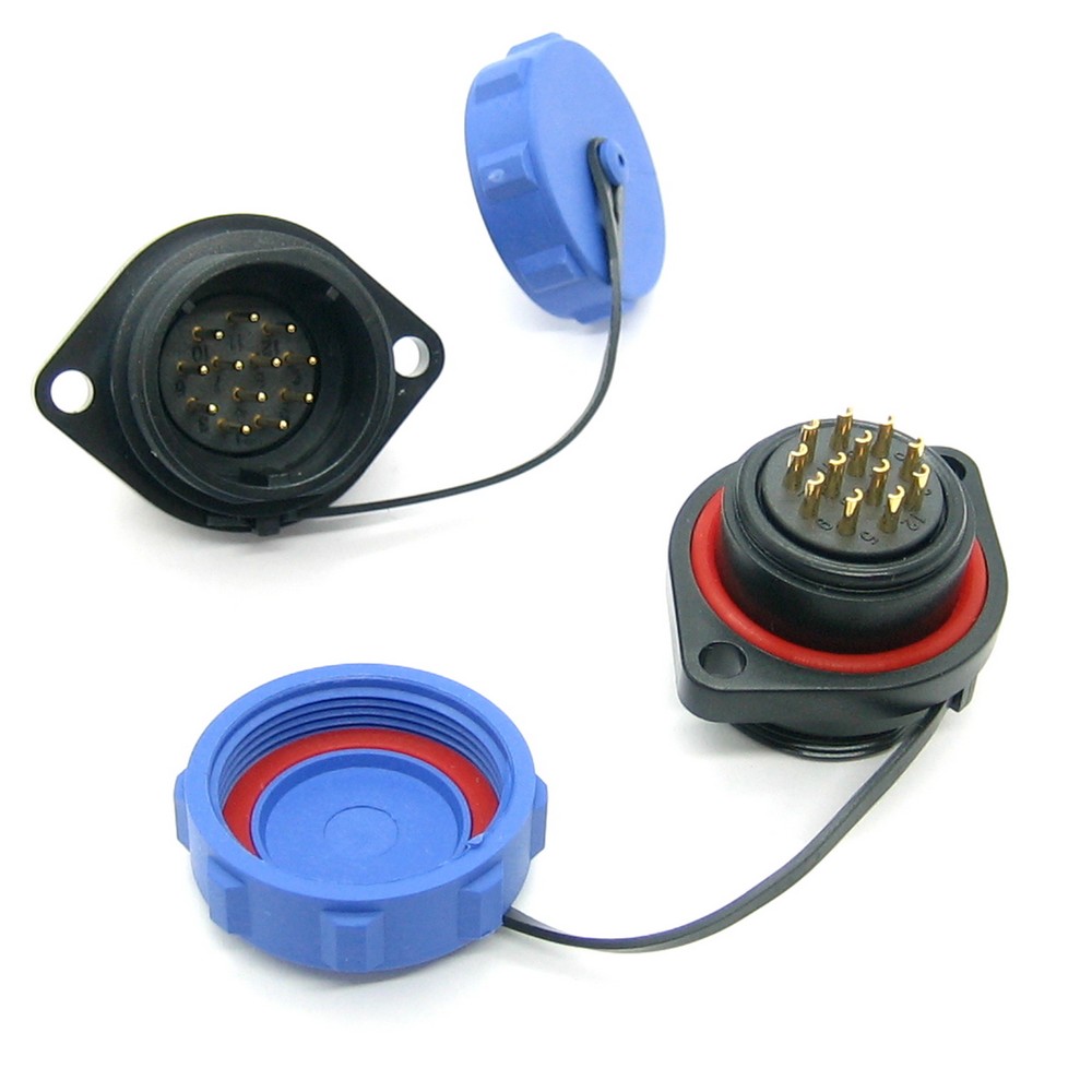 SP21, вилка, PIN: 12, IP68, пайка на панель, 400В, с фланцами