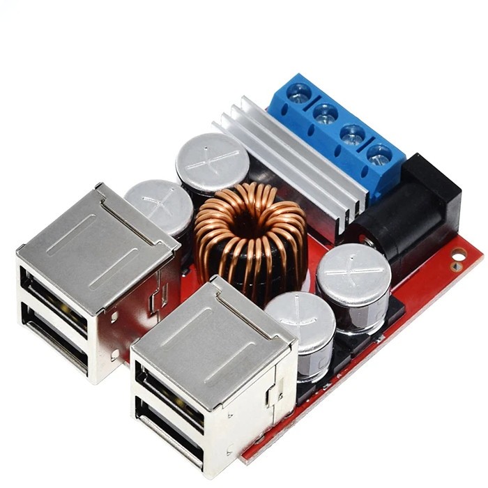Понижающий DC-DC преобразователь. Входное напряжение: 8...35 В. Выход: 4xUSB. Макс. мощность: до 42 Вт. DC-DC Power Sullpy 8-35V to 4USB 5V8A