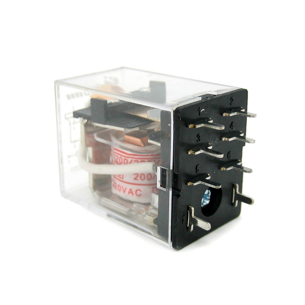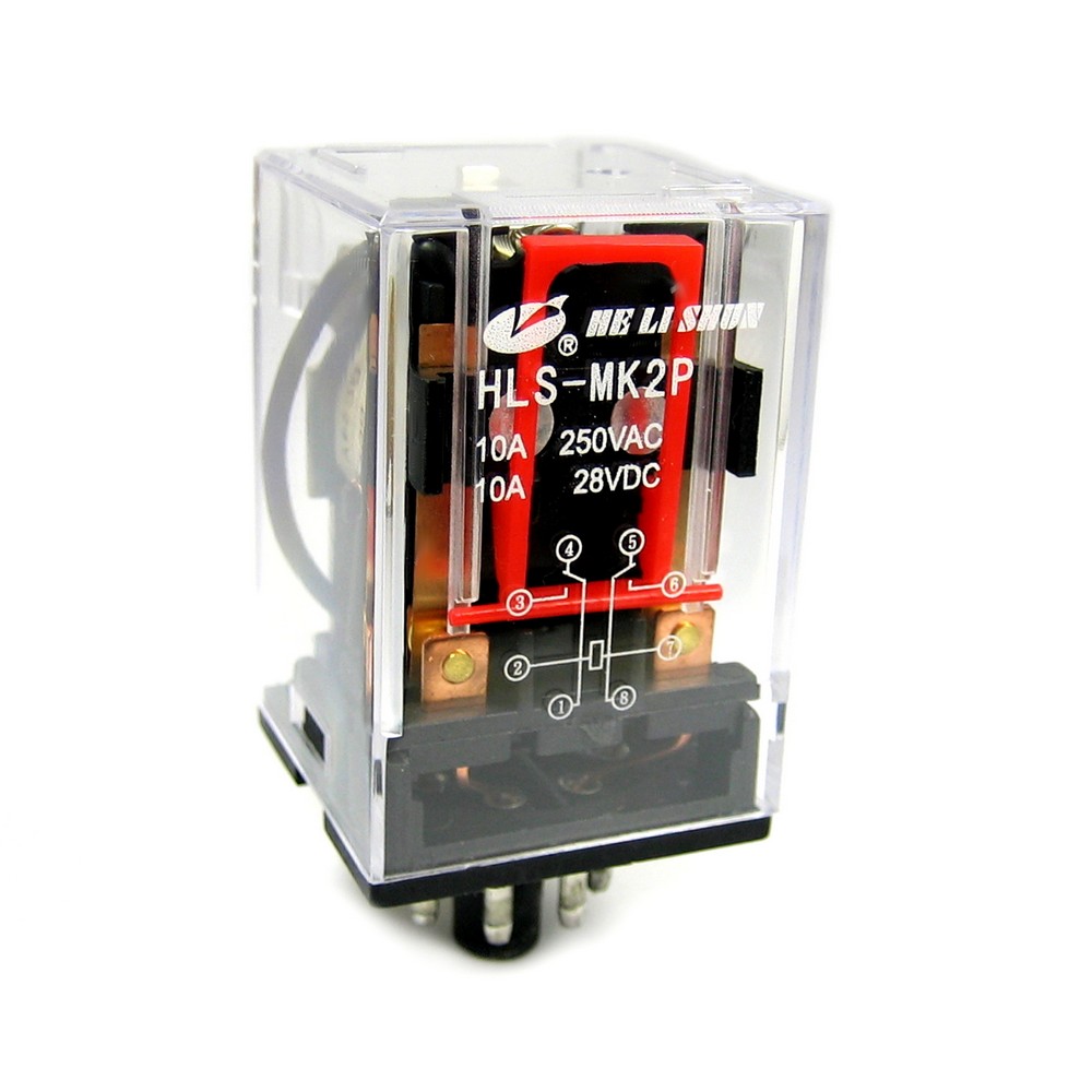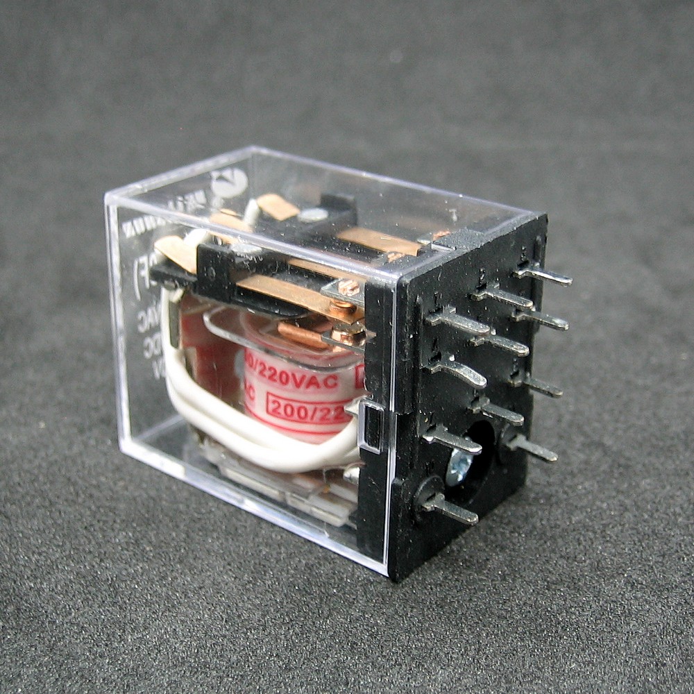 напряжение 220 VAC. - Тип контактов 2 C - параметры контактов 10 A 250 АС / 28 DC, Размер:34.7x34.7x52мм